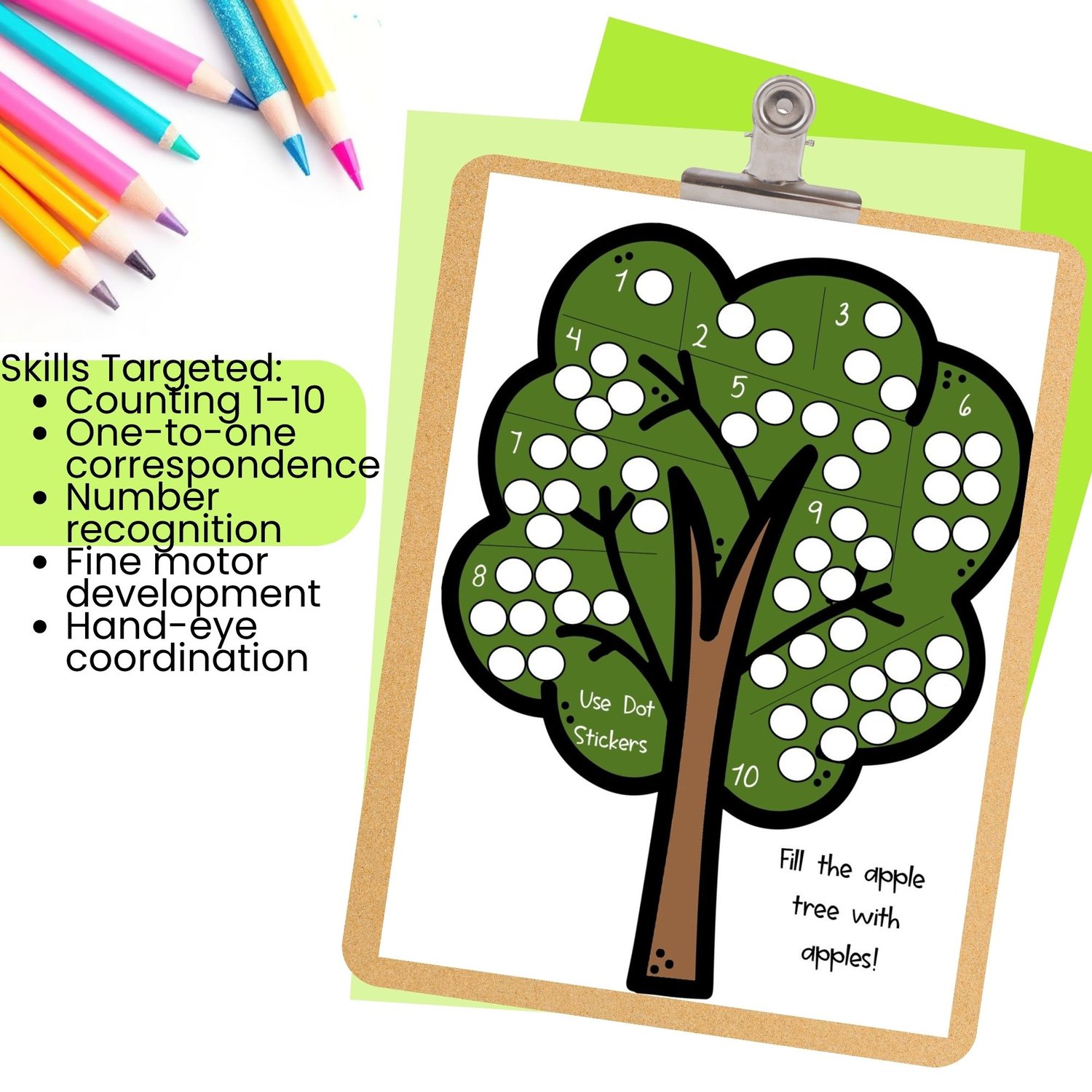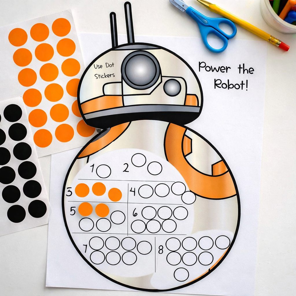 👉 Kids place dot stickers as they count, building one-to-one correspondence in a super visual way.