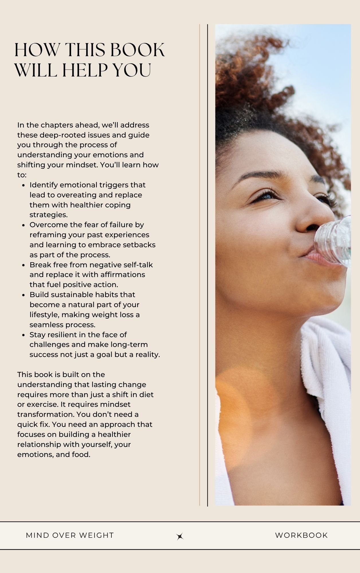 “Mind Over Weight” is a transformative eWorkbook that helps you unlock the mental and emotional patterns that stand between you and lasting change. This isn’t another calorie-counting manual — it’s a mindset reset. Inside, you'll learn how to: