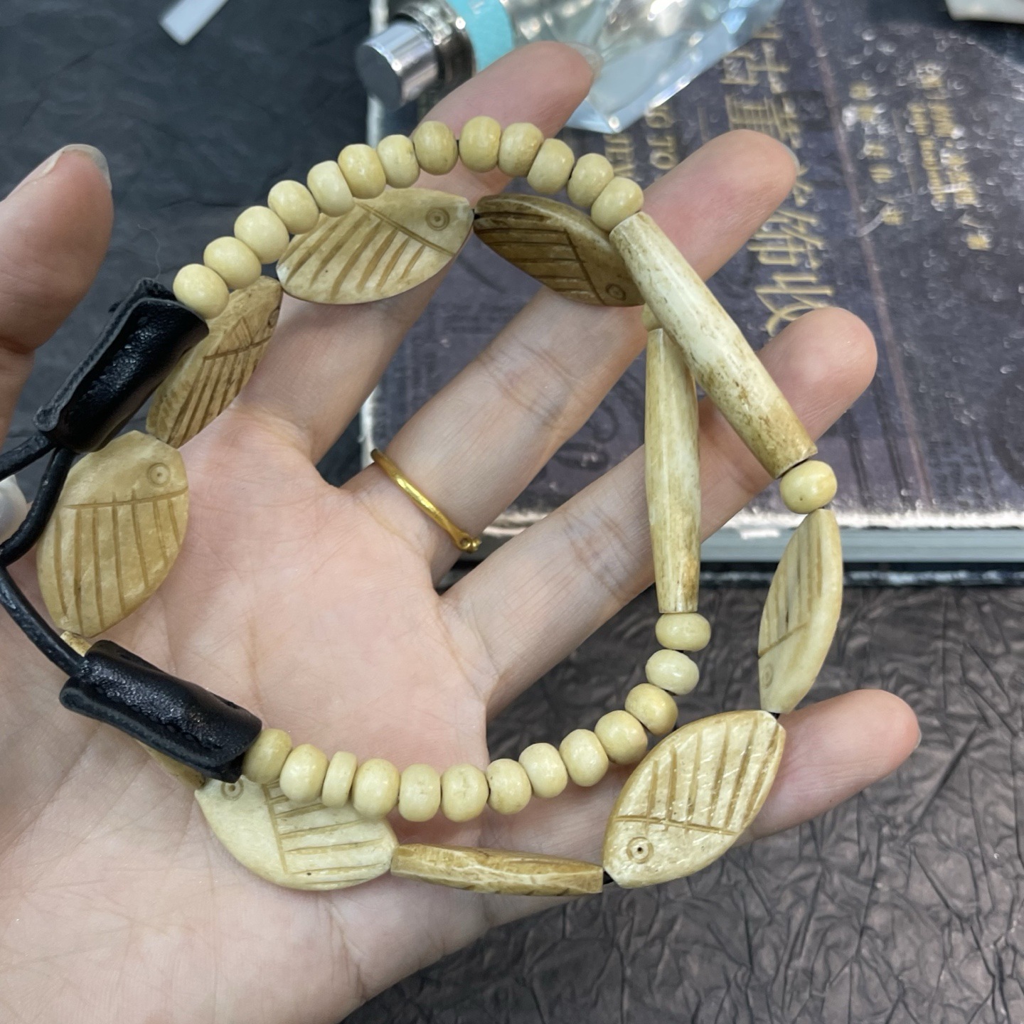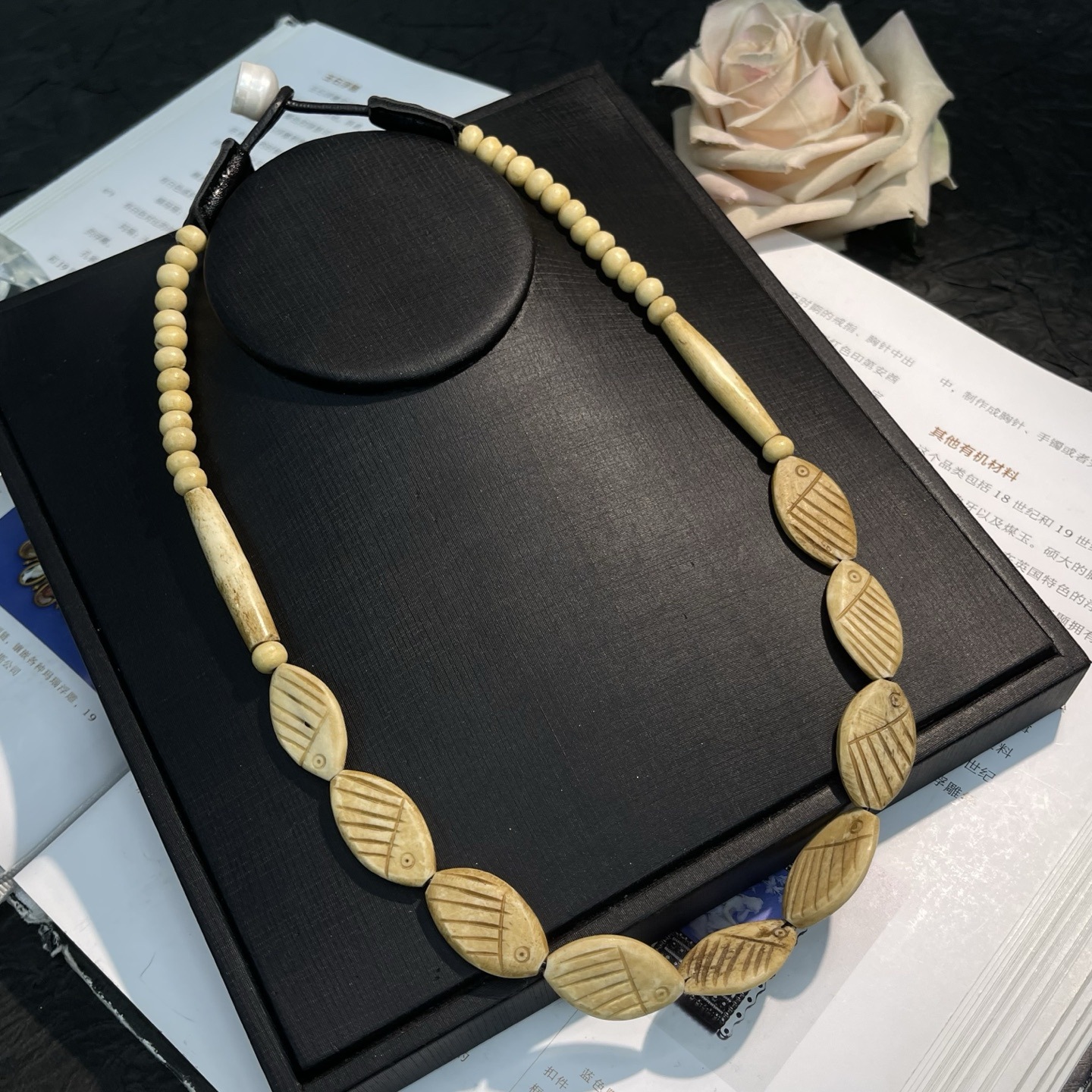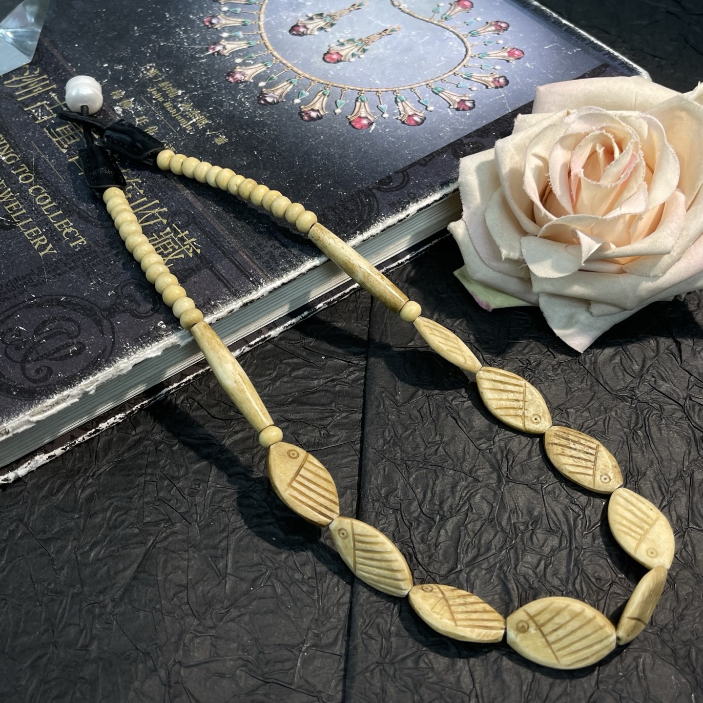 Handmade boho hippie ethnic vintage yellow horn small fish beaded necklace