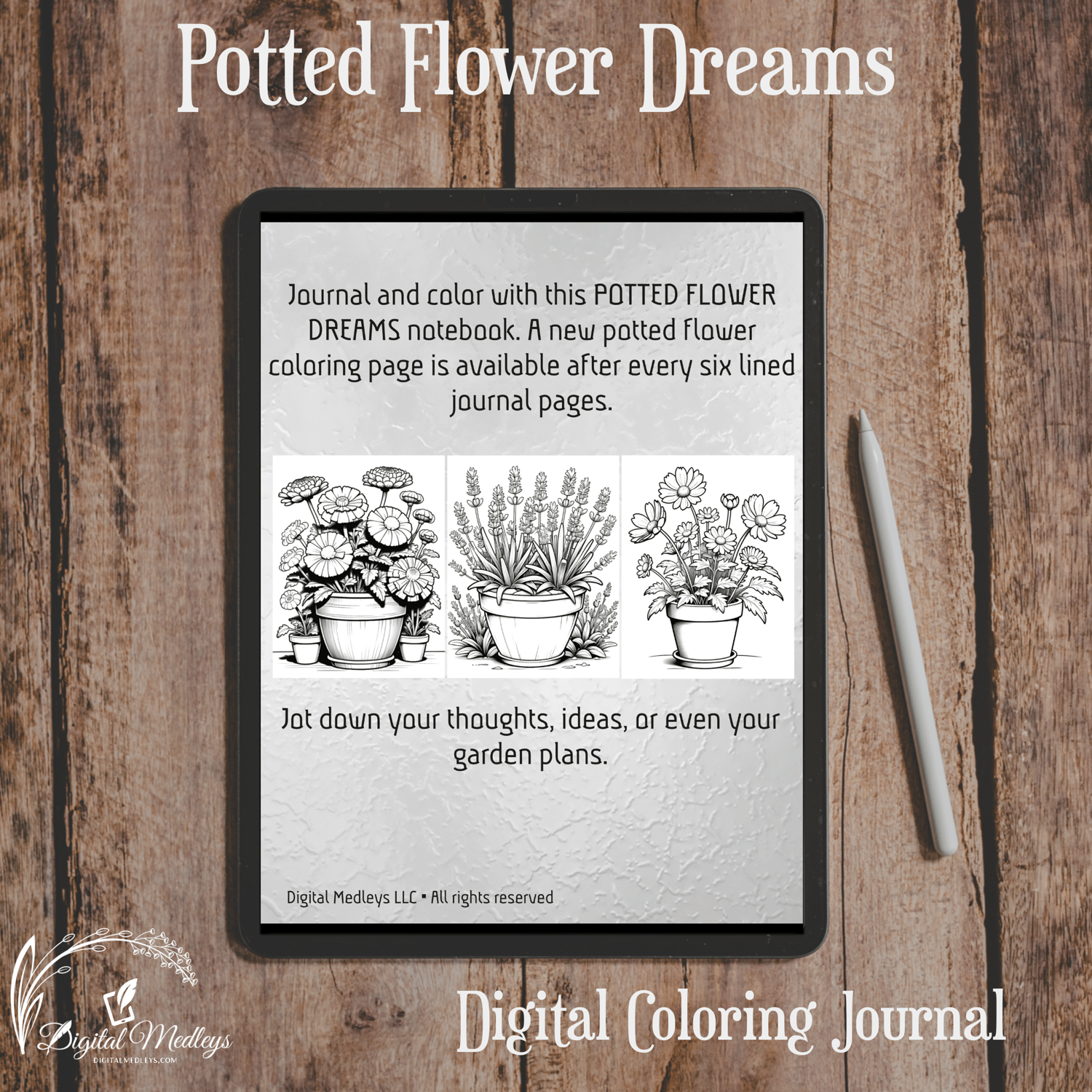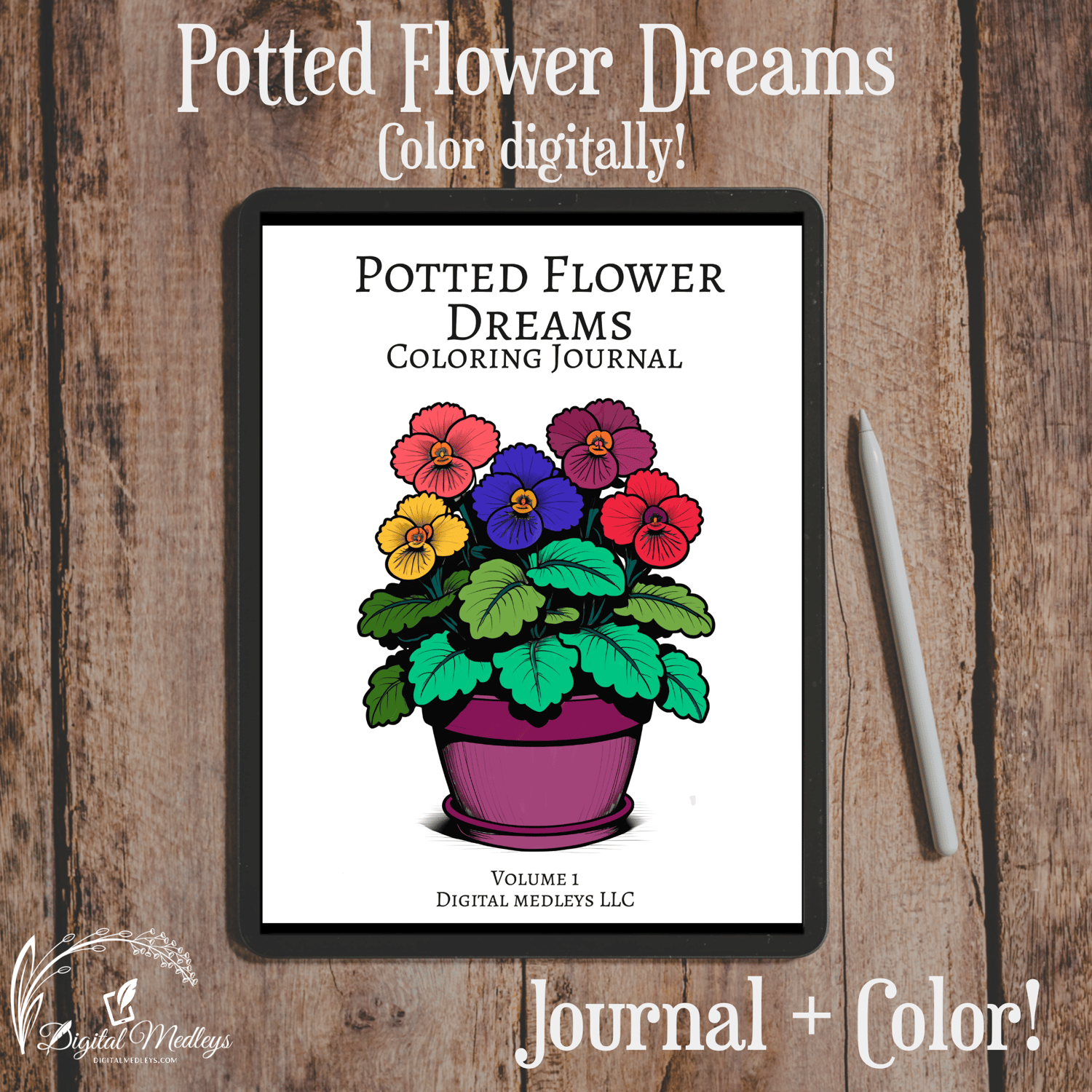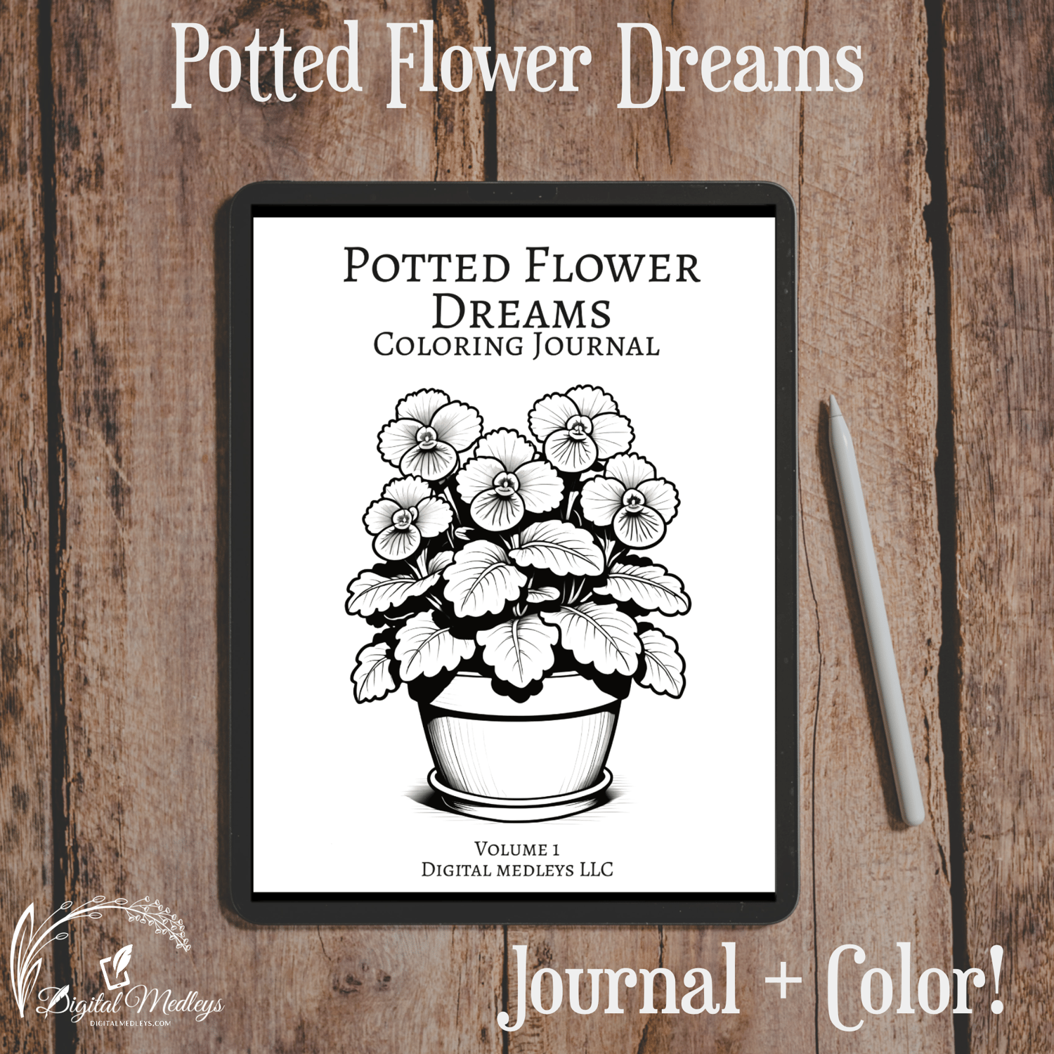 Potted Flower Dreams: Coloring Journal, Volume 1