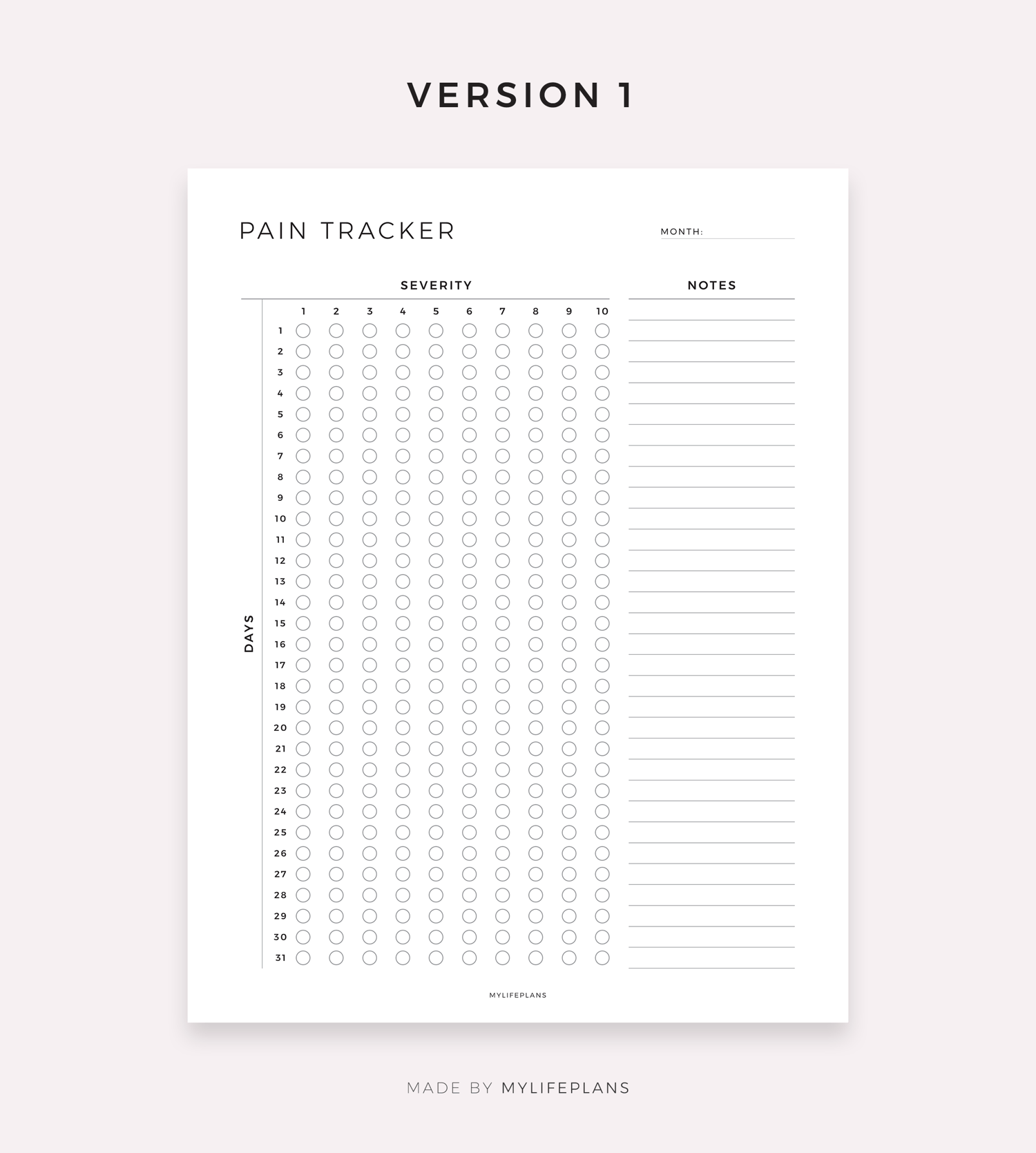 Monthly Pain Tracker, Digital Template for Goodnotes, Notability, Ipad
