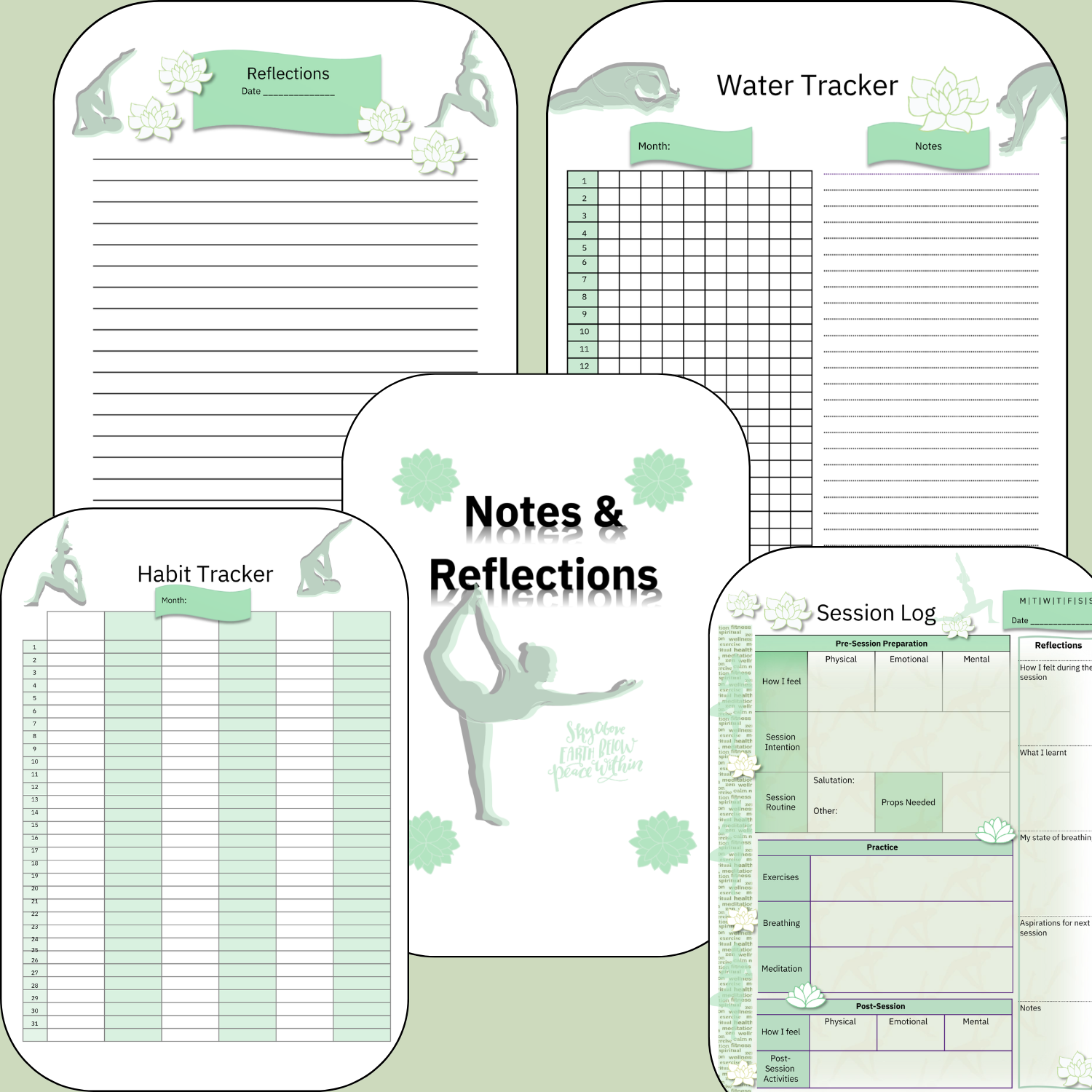Yoga Journal Printable Planner, it is Created in Canva. Yoga Journal Printable Planner with 29 pages in 8.5"x11 inch, designed in a soothing mint color palette, and there are 1 model options included for you. This yoga calendar is available as a PDF for instant digital download upon purchase, or anytime you desire to download the art file