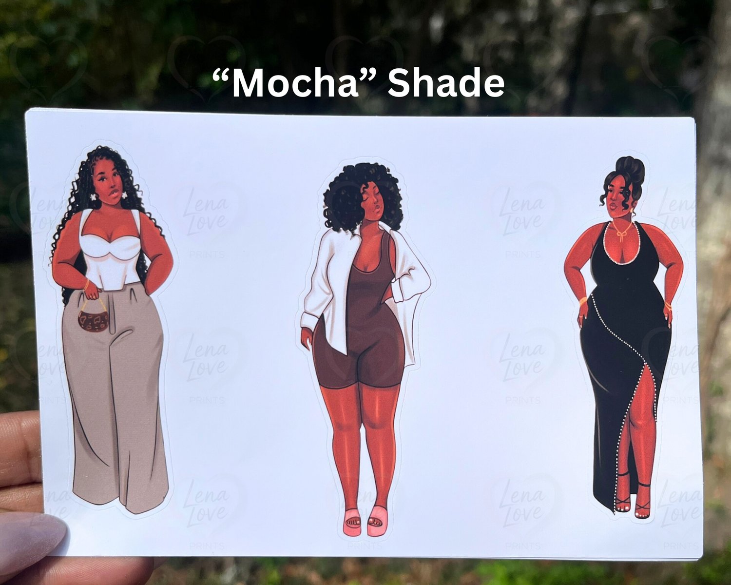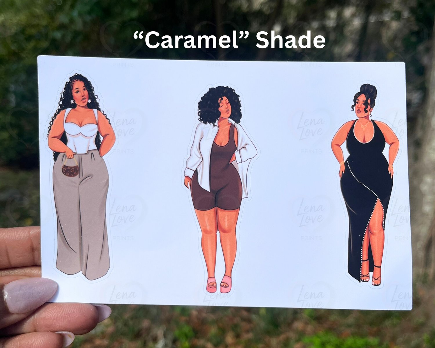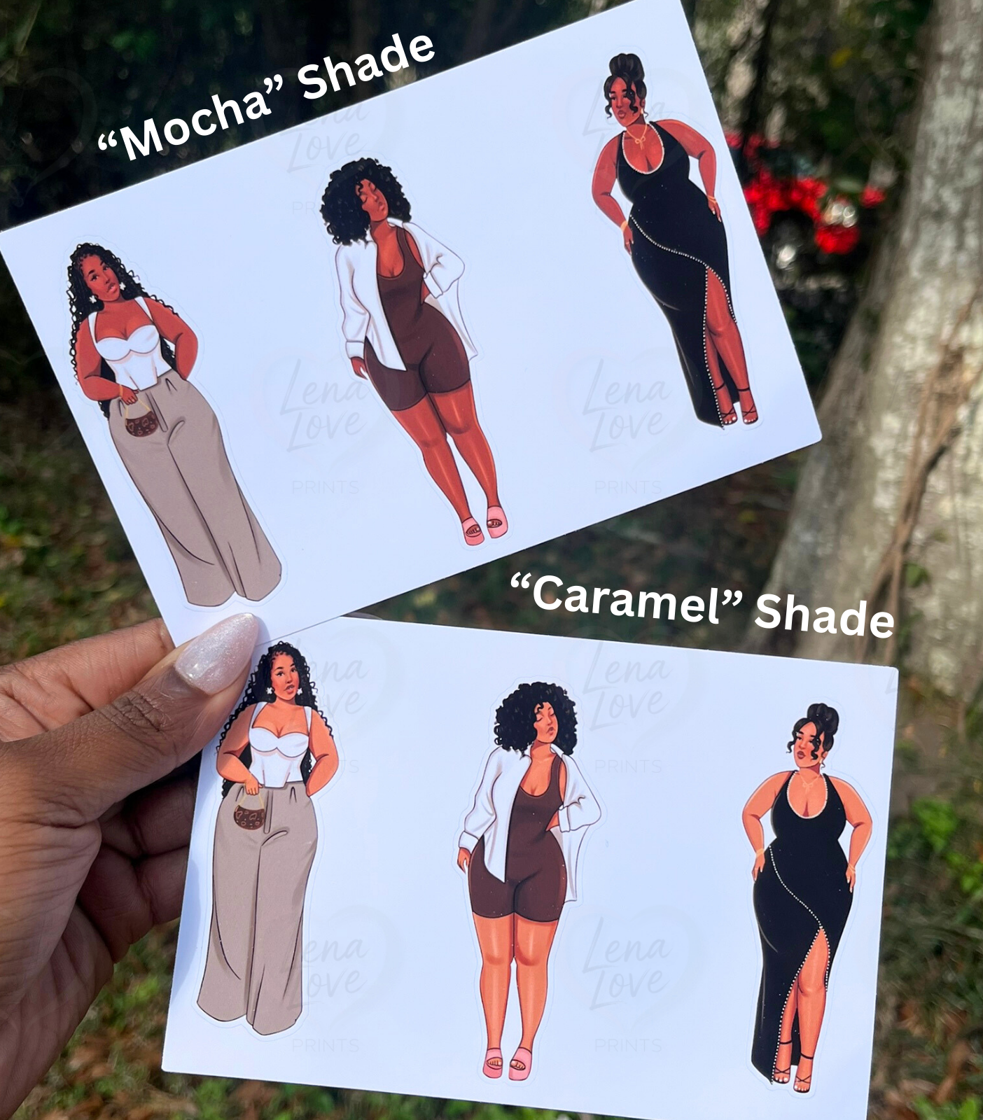 This stylish 3-piece curvy girl sticker sheet celebrates beauty, confidence, and everyday glamour. Featuring three chic illustrated Black women per sheet—available in both “Mocha” and “Caramel” skin tones—these stickers are designed to bring elegance, personality, and bold feminine energy to your planner, journal, or creative space.