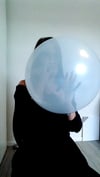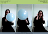 Carla b2p's this nice blue balloon. The loud bang made her wince.
