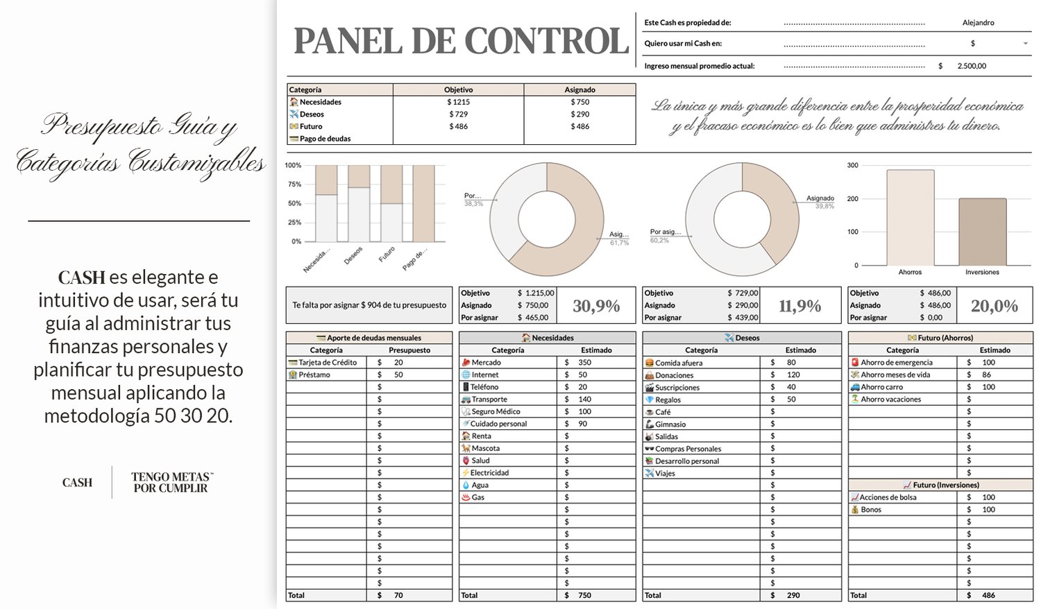 CASH será tu partner y guía para administrar tu dinero usando la metodología 50.30.20: