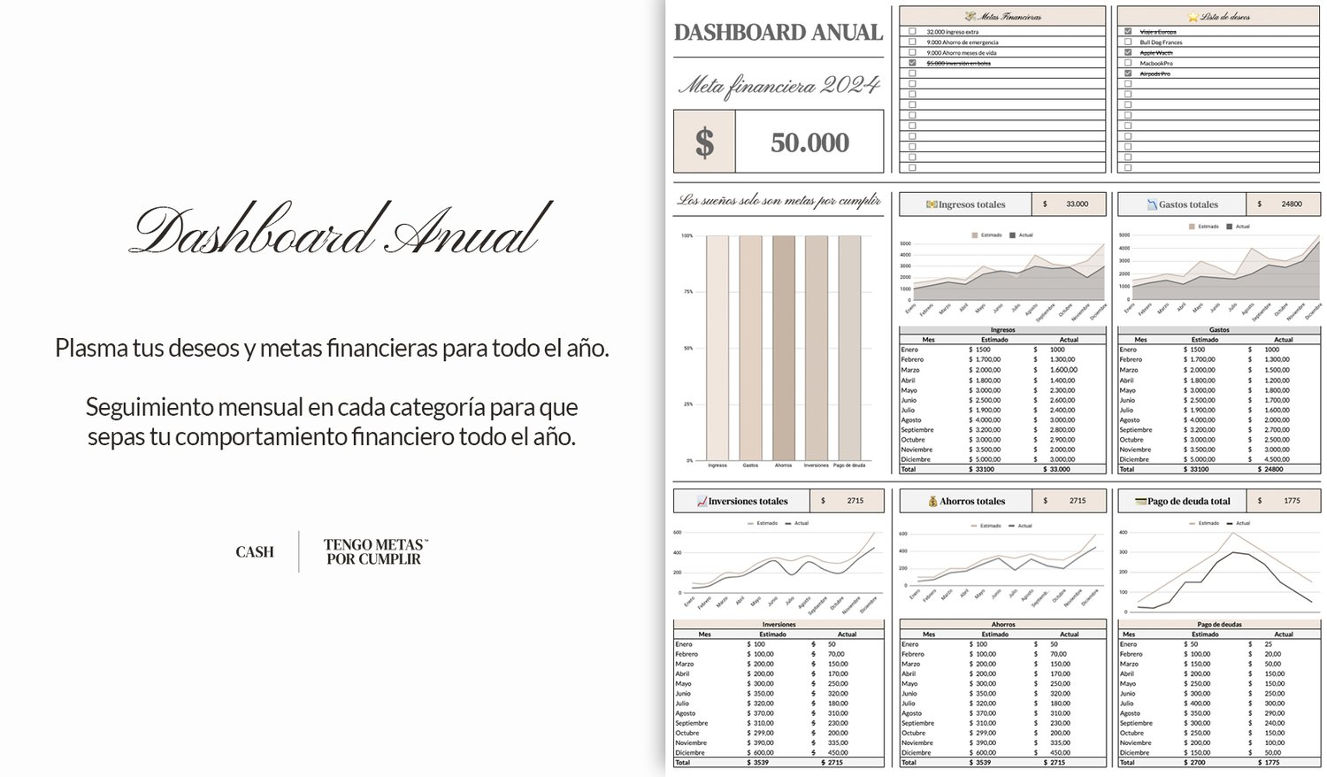 - Panel Anual: Podrás ver tus deseos y metas más importantes junto al rendimiento financiero de todo el año.