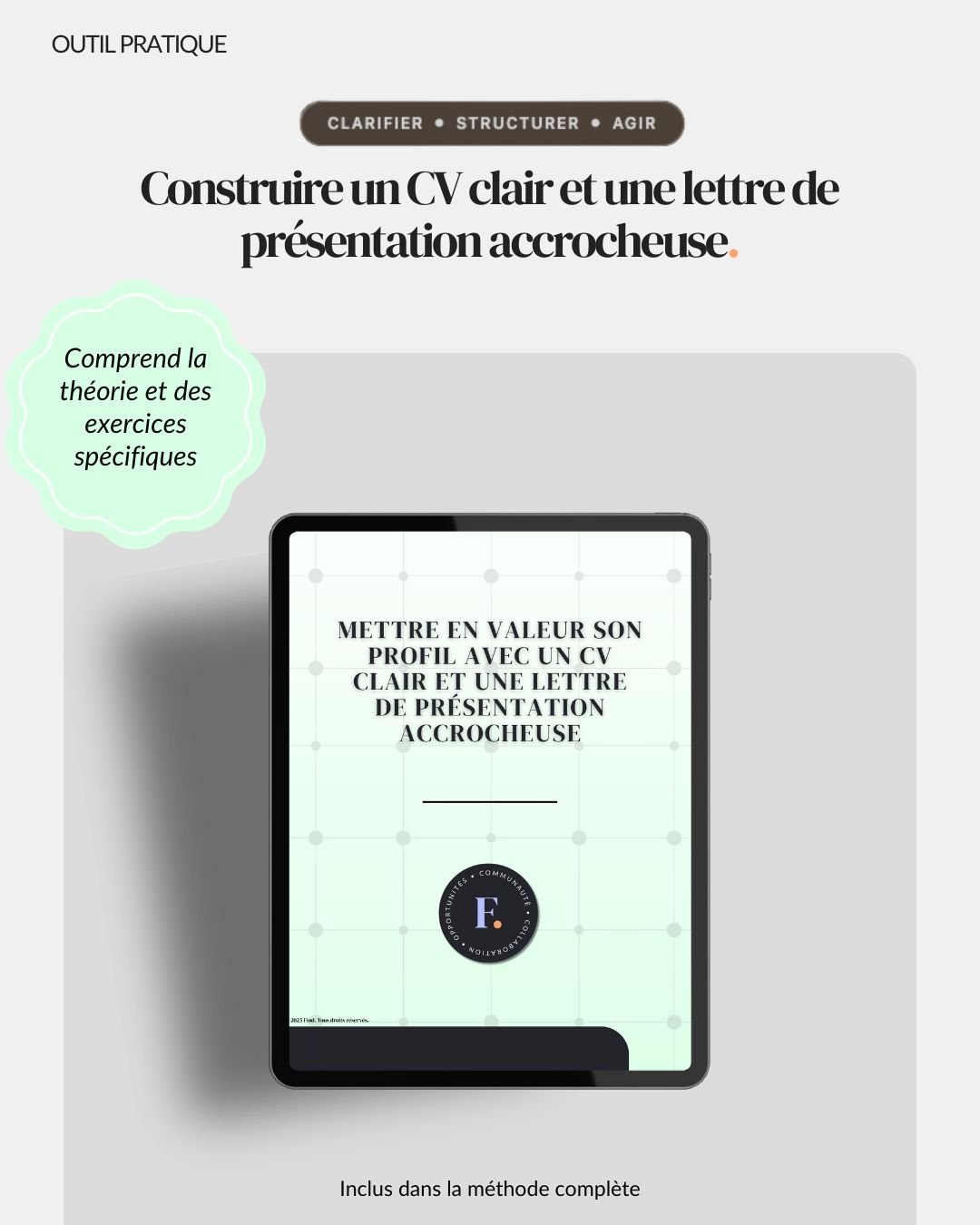 Développées par une professionnelle en ressources humaines, les ressources Find. proposent une approche simple et structurée pour vous aider à réfléchir, vous organiser et passer à l’action avec plus de clarté. Conçues pour être utilisées de façon autonome, elles vous permettent d’avancer à votre rythme grâce à des outils concrets et accessibles. Chaque ressource peut être utilisée individuellement selon vos besoins ou intégrée à la méthode complète, qui rassemble l’ensemble des ressources autour d’une démarche cohérente.