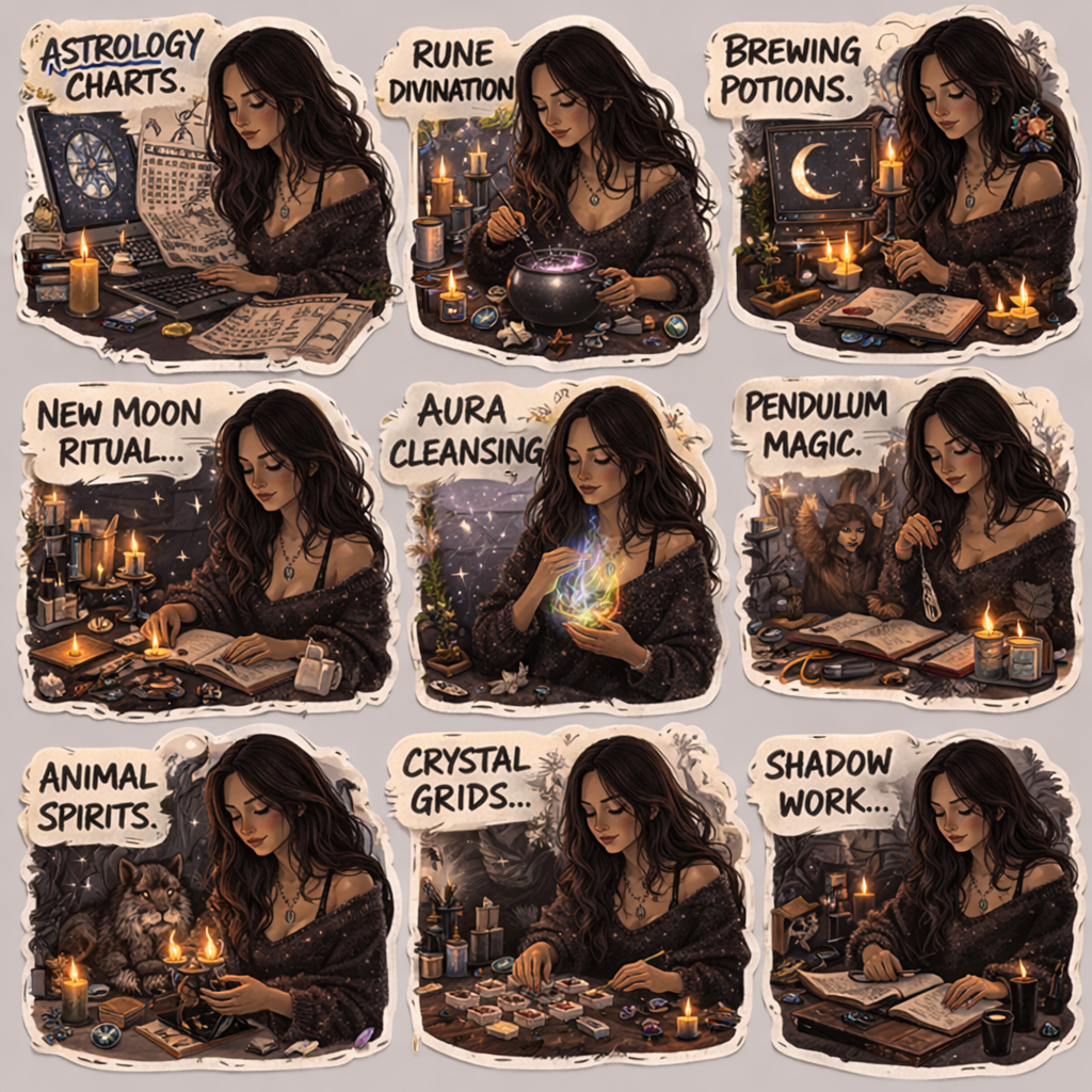 Moody Magic Girl - Mystical “dev girl” stickers blending late-night coding energy with astrology, rituals, and creative magic. 🖤