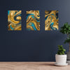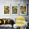 A digital file for printing; Wall art decoration set. 3 Liquid gold art deco for new home. Abstract art wall decoration set liquid ink modern art. Instant download art. Three abstract art printables for your wall.
