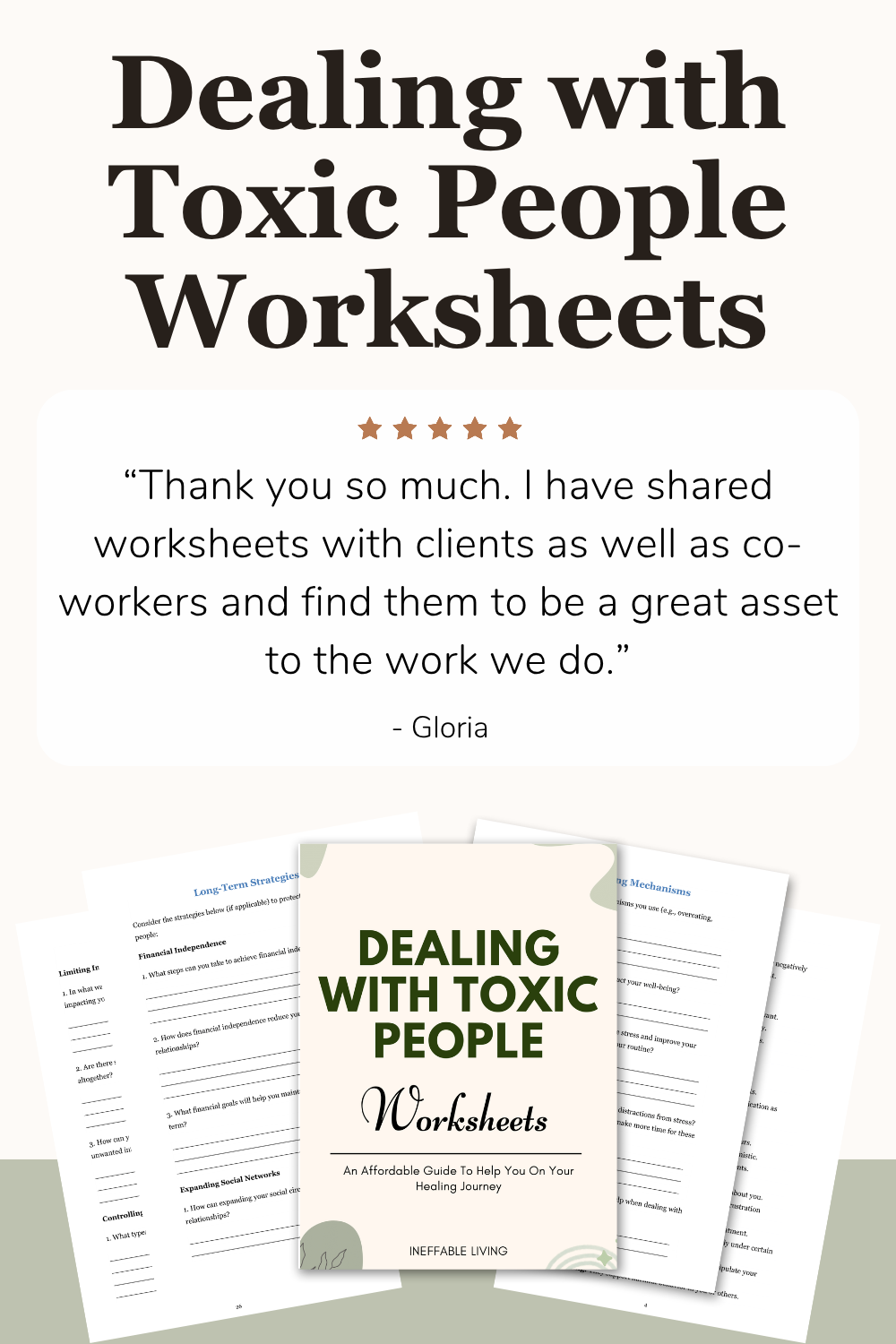 If so, Dealing with Toxic People Worksheets can help you take control of your well-being and start your journey to healthier relationships.