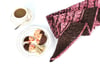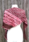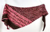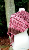 Inspired by holiday treats and baking, Dipped in Chocolate is an asymmetrical, triangular shawl consisting of garter stitch, slipped stitches and a simple lace pattern that is only worked on the right side rows. Only one color is worked per row for the slipped stitch pattern. Instructions for the lace pattern are both written and charted.