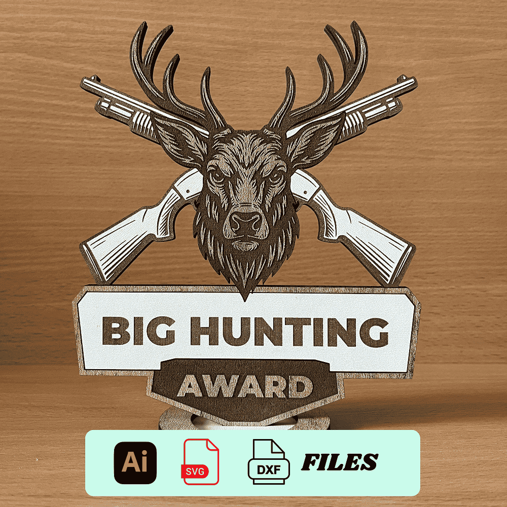 Deer Hunting Award Trophy – Laser Cut Files SVG DXF AI for 3mm & 4mm Wood