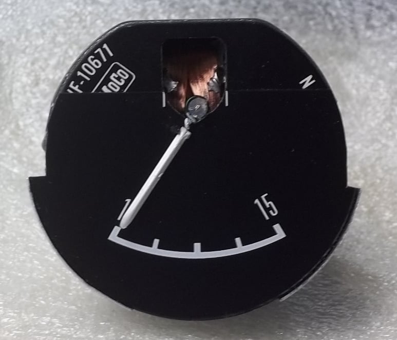 The G1XV is the Amp meter from a 67 or 68 XR7 converted to read volts. It has a new overlay that duplicates the original -60 / +60 amp scale, but has been modified to read 10 / 15 on a volt scale.