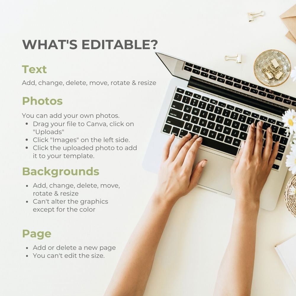 • AFTER PURCHASE, download the PDF. Click "EDIT YOUR TEMPLATE HERE", your CANVA template will open. EDIT then DOWNLOAD as JPG or PNG.