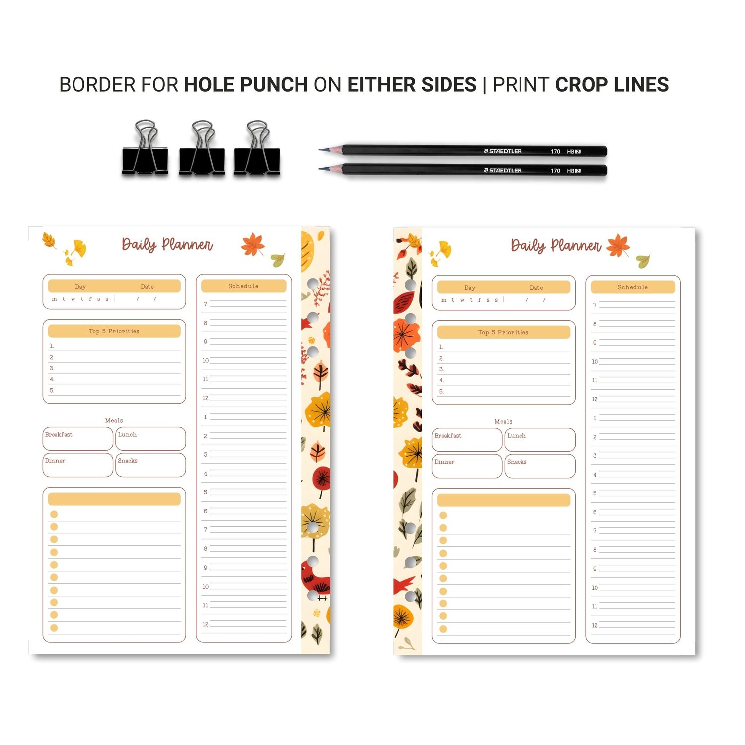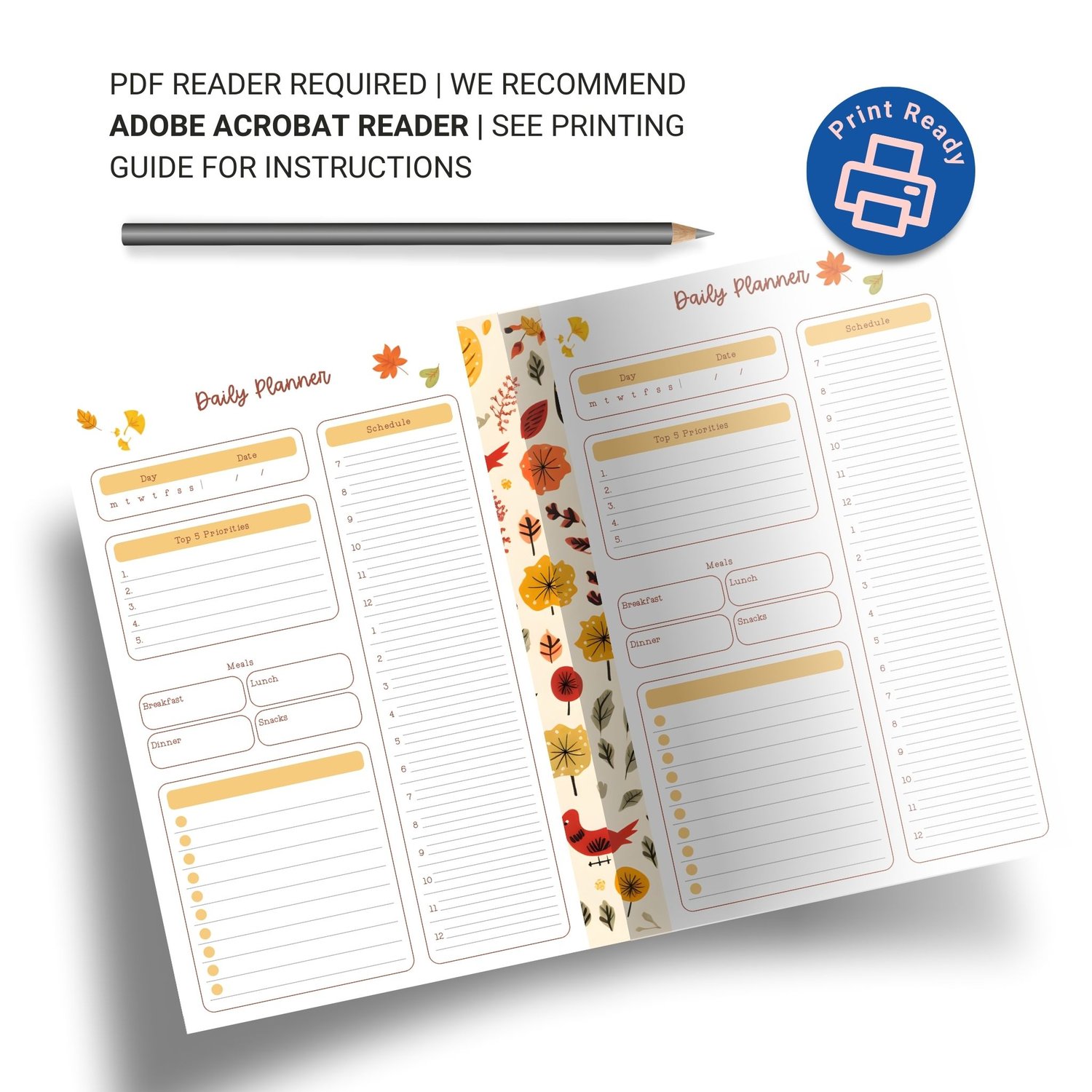 Daily Planner - Fall Themed - Printable Digital Download PDF
