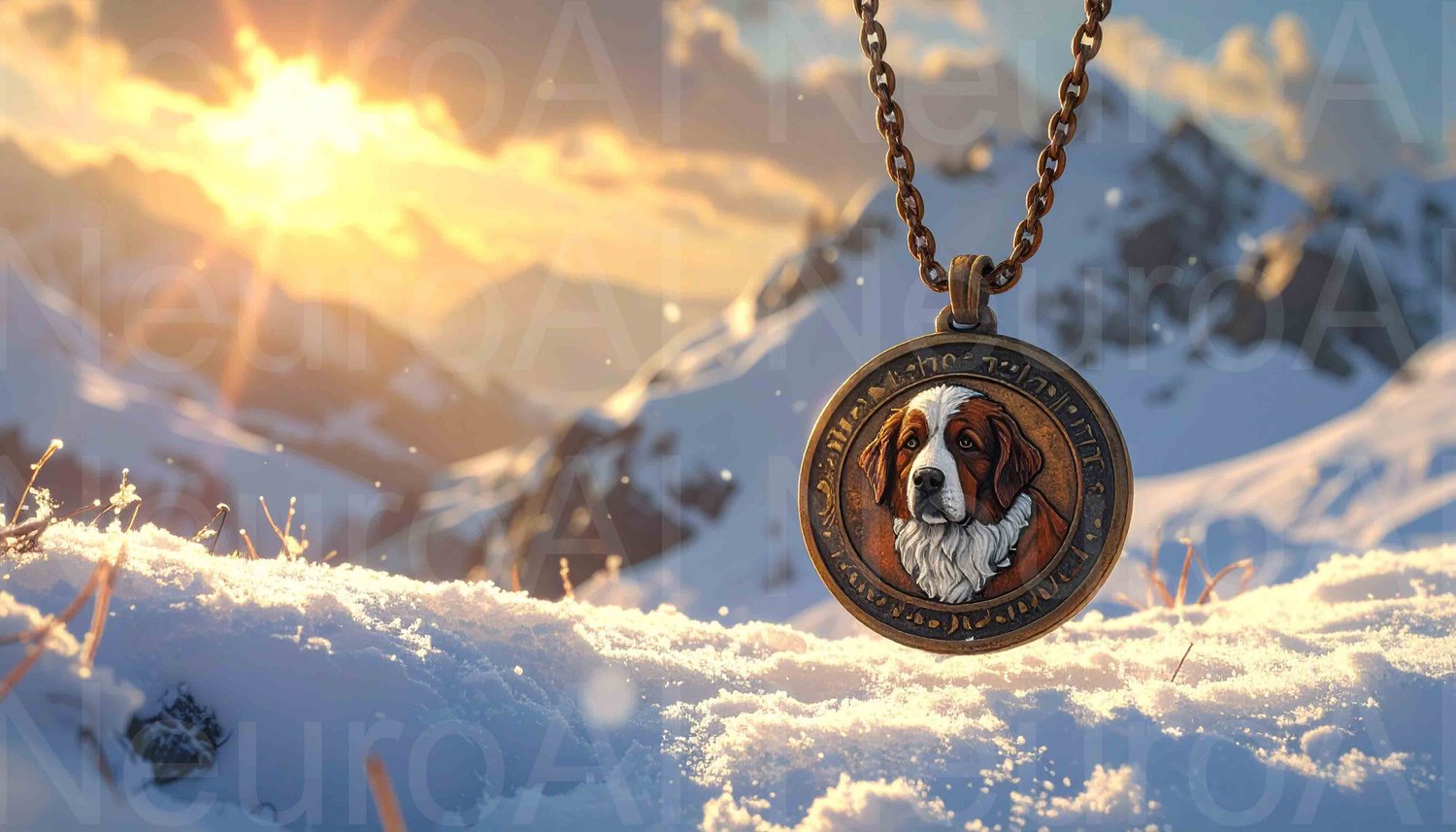 Stunning dog portrait pendant in snowy mountains