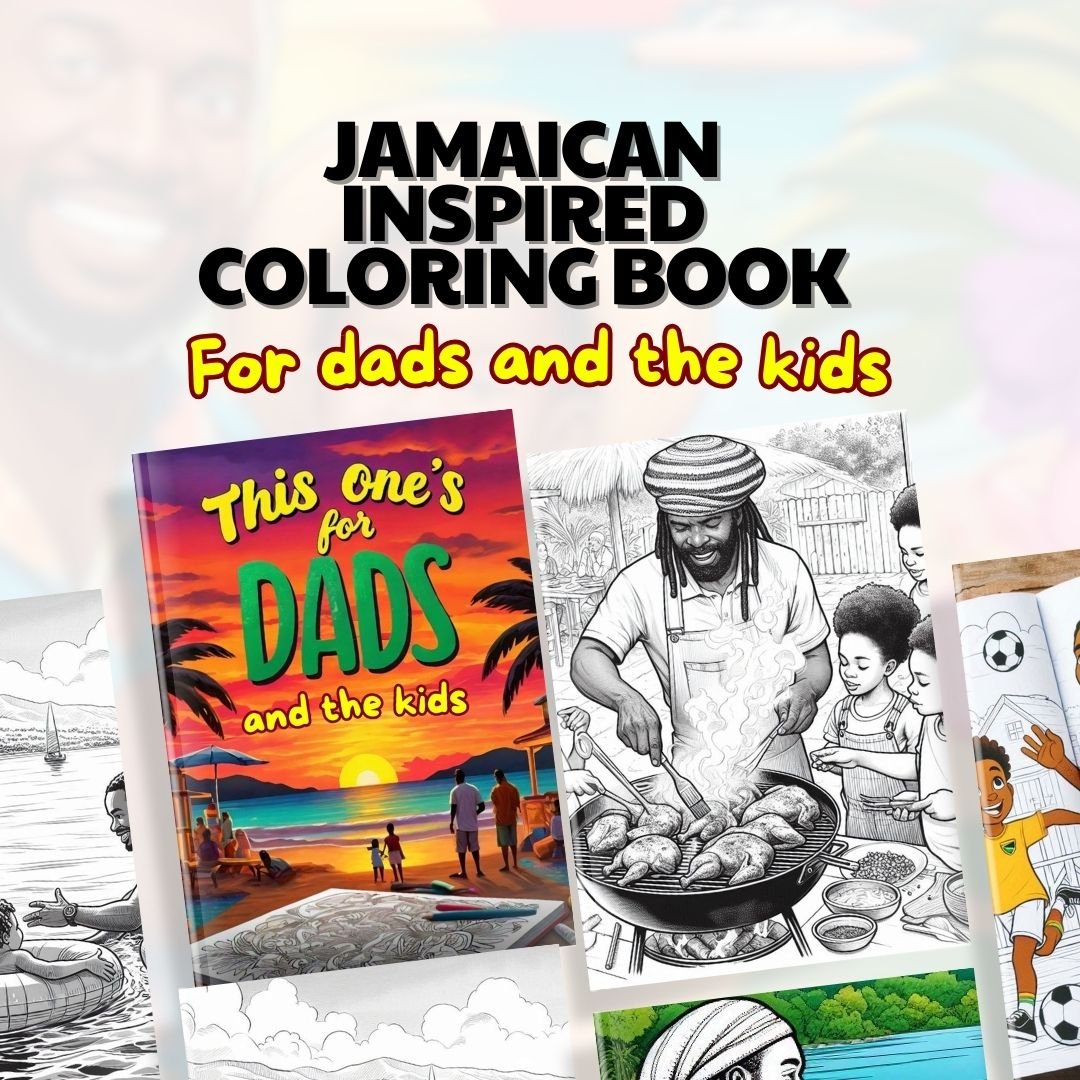 Celebrate the special bond between fathers and their children with this vibrant Jamaican-themed coloring book, perfect for Father's Day. Each page captures heartwarming scenes of family life in Jamaica, from playing soccer and cricket to swimming at the beach and enjoing jerking chicken. Enjoy coloring moments of love and joy, showcasing the rich culture and beautiful landscapes of Jamaica. Ideal for kids and adults alike, this book is a wonderful tribute to the unforgettable moments shared with dad.