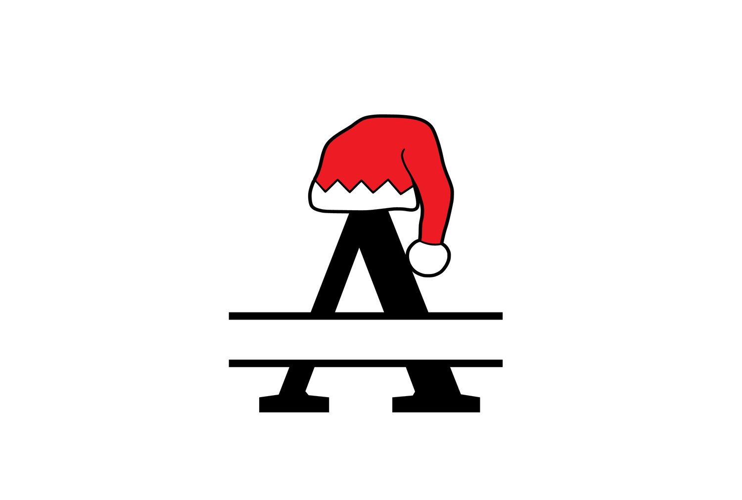 Get into the holiday spirit with this A Letter Split Monogram SVG featuring a cute Santa hat!