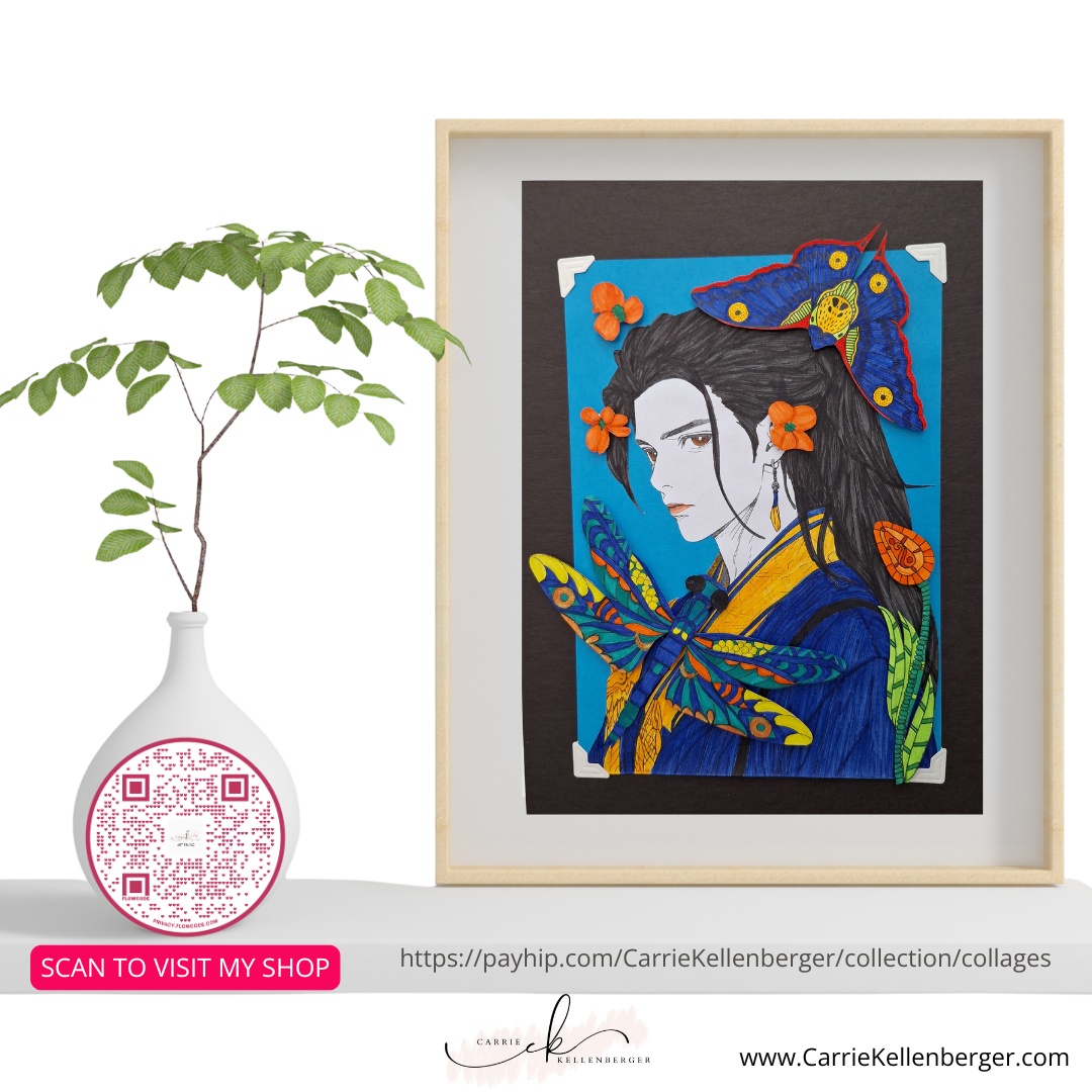My paper cutting technique adds an extra 3D dimension of beauty and intricacy to each design, making my collages a delightful keepsake. They’re meant to brighten any space: an office cubby, a senior’s bedside, a child’s room, a sunny kitchen, or anywhere your heart desires.