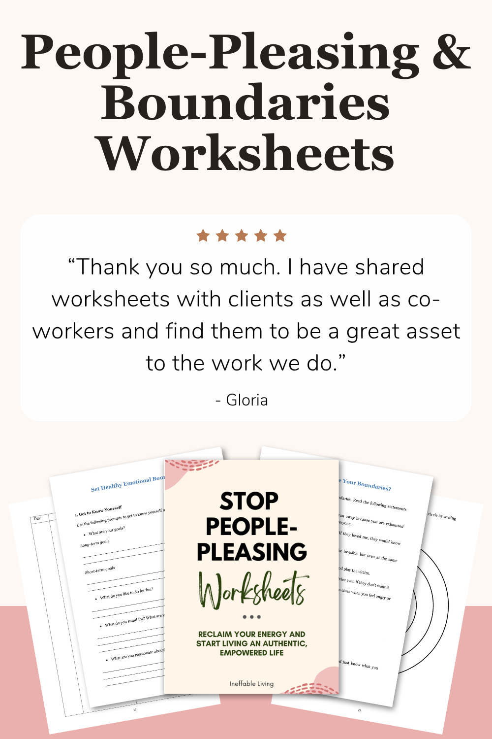 If so, Stop People Pleasing and Set Boundaries Worksheets can help you recognize people-pleasing patterns, develop assertiveness, and establish boundaries that support healthy, balanced relationships.