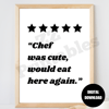 Chef Was Cute Would Eat Here Again Kitchen Wall Art Print Poster Black Stars Trendy Retro Typography Printable Decor Digital Download JPEG