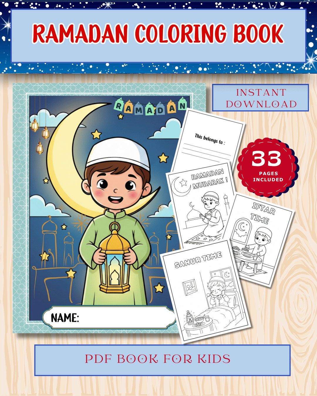 • ✅ Includes pages like “Ramadan Mubarak!”, “Iftar Time”, and “Sahur Time”