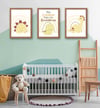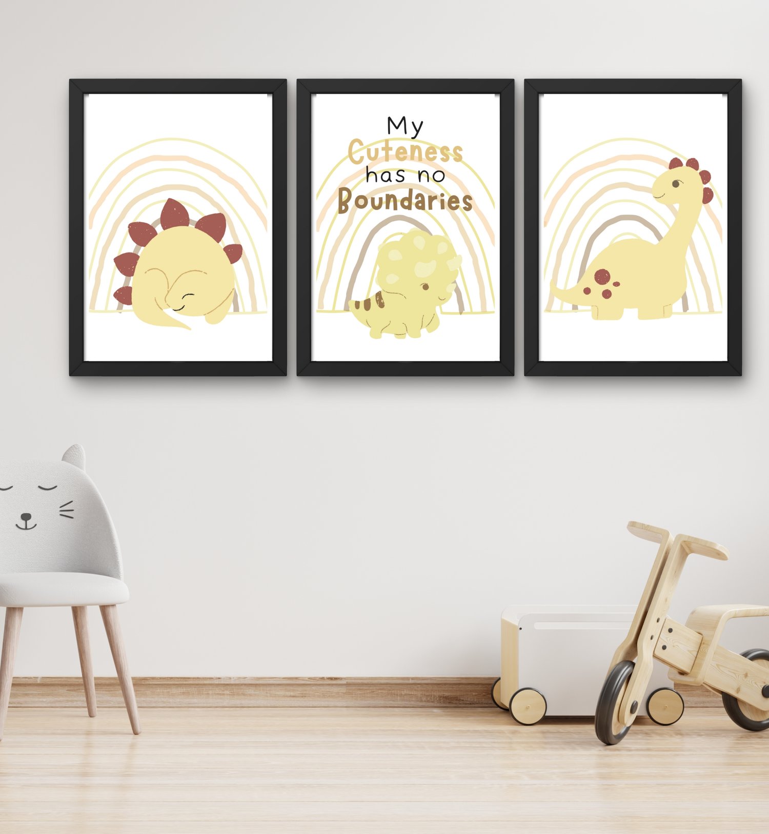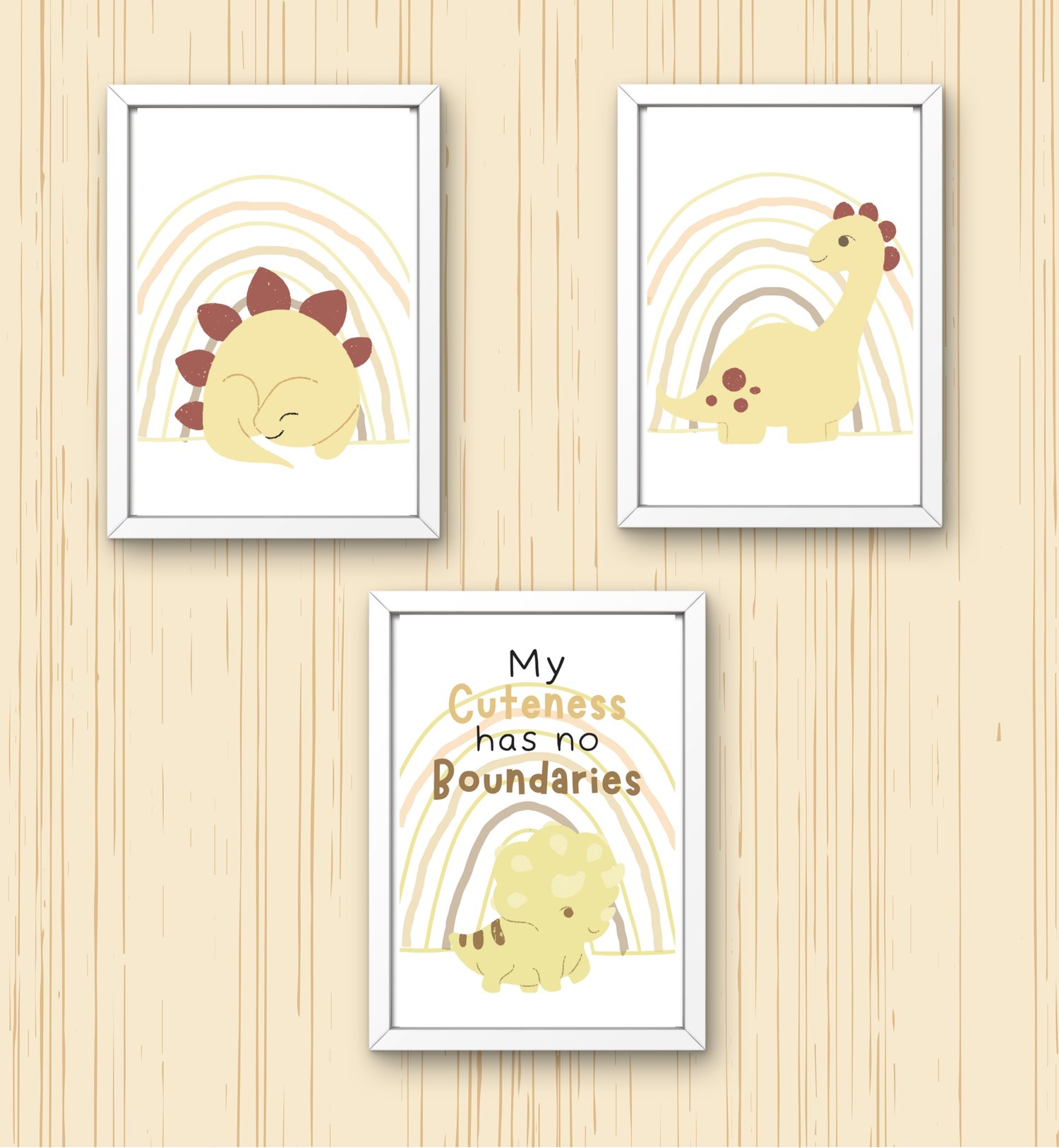 Transform your little one's room into a prehistoric paradise with this charming set of three wall prints featuring adorable dinosaurs. Perfect for a baby boy or toddler's room, the neutral color scheme of the prints ensures they will complement any nursery, bedroom, or playroom decor. These prints are not just cute but also educational, as they ignite your child's imagination and curiosity about the fascinating world of dinosaurs. Don't miss out on this opportunity to add a touch of fun and whimsy to your child's space!