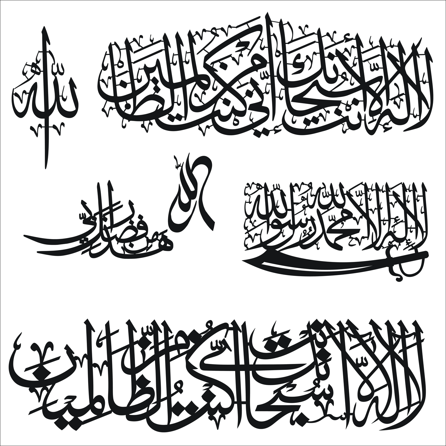 - Elegant Designs: This collection features 06 unique and beautifully crafted Arabic calligraphy designs, each capturing the essence of Islamic art.