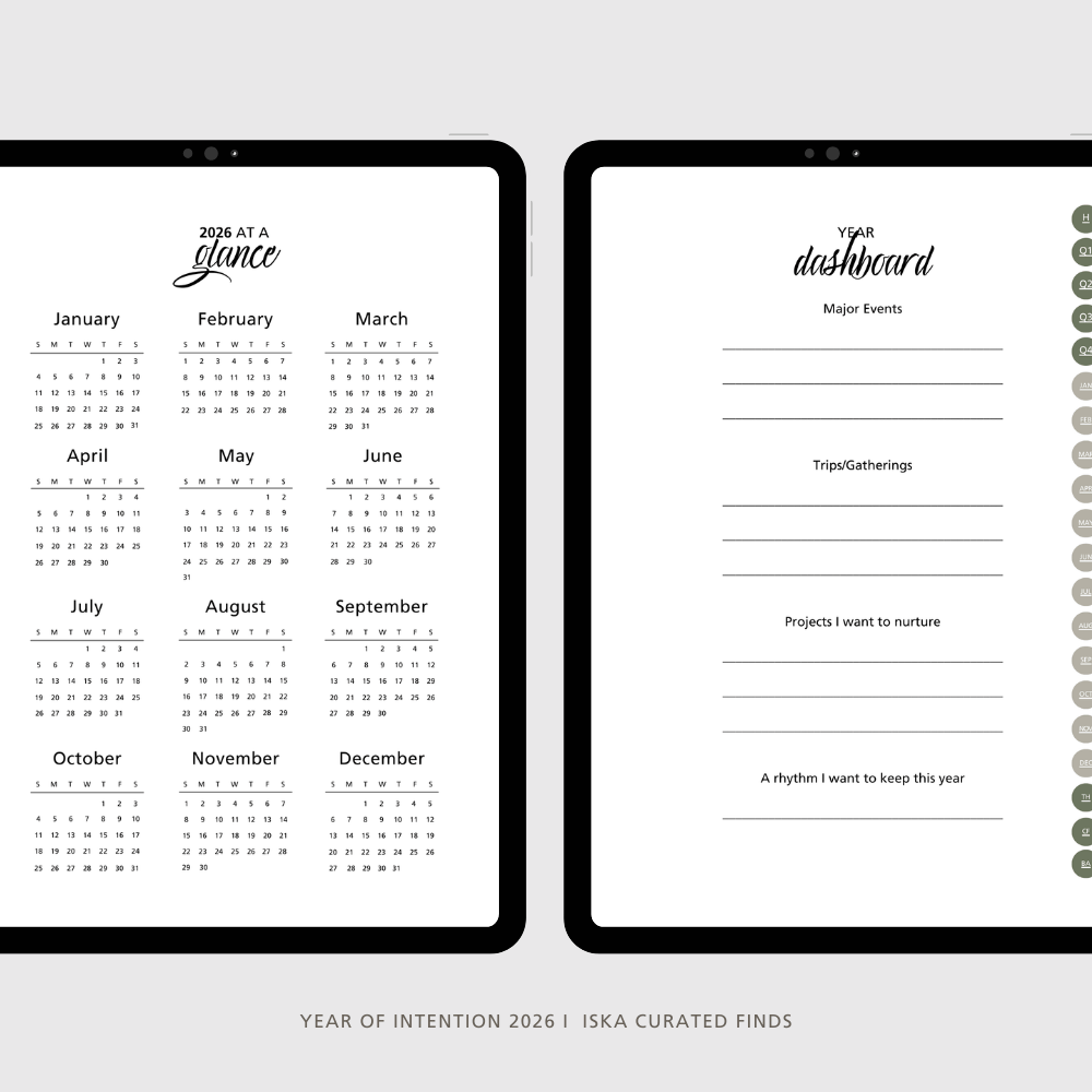 A thoughtfully designed digital planner for people who want to move through 2026 with clarity, intention, and calm.