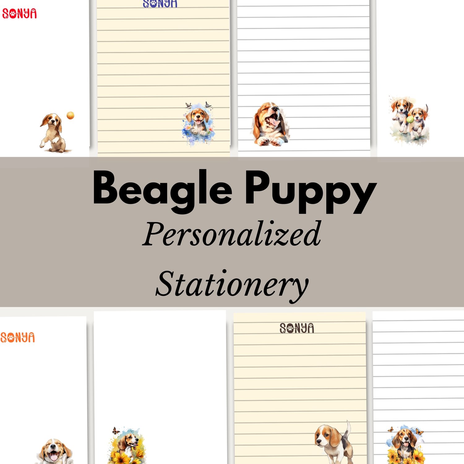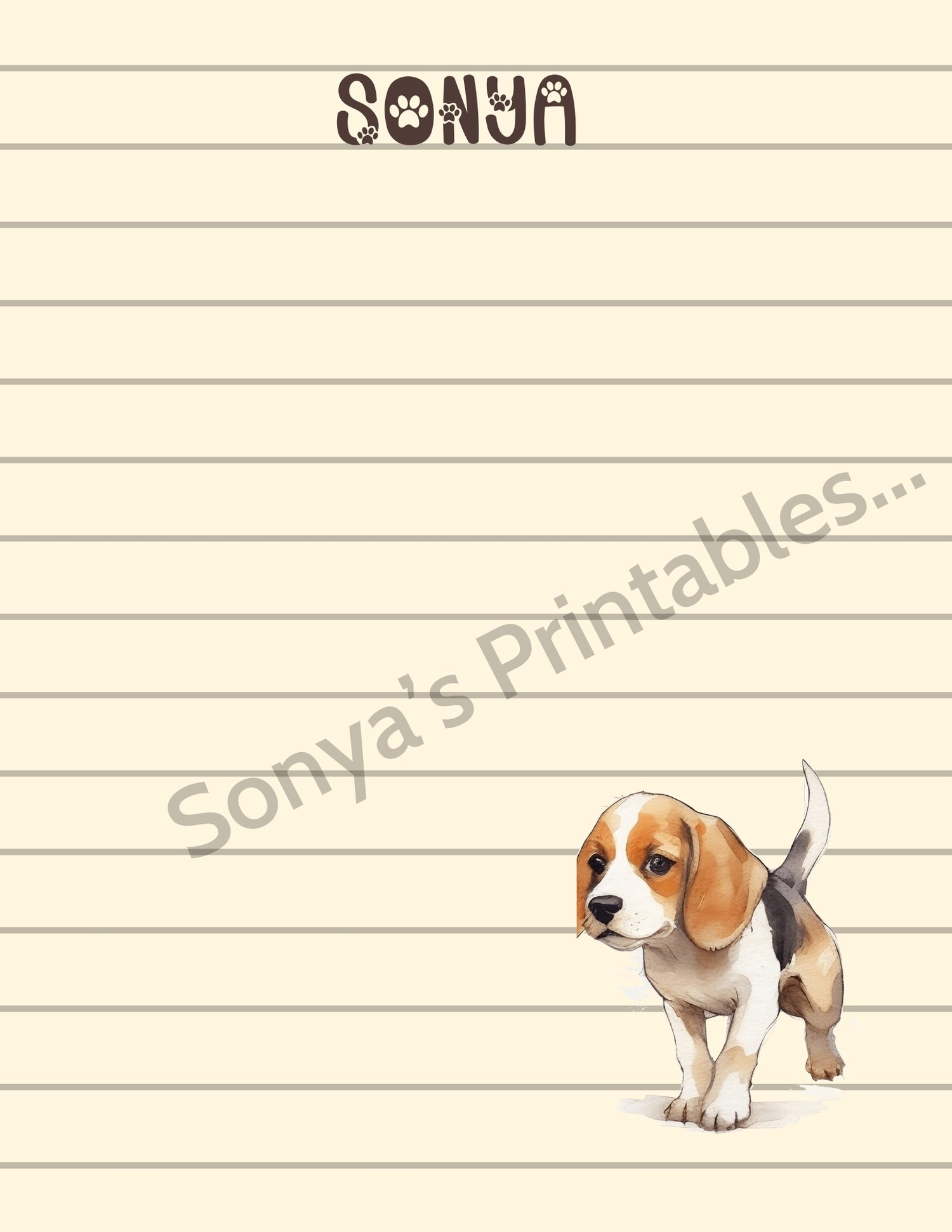 Personalized Beagle Puppy Stationery | Printable Beagle Writing Paper | Personalized Beagle Puppy Note Paper | Beagle Penpal Paper