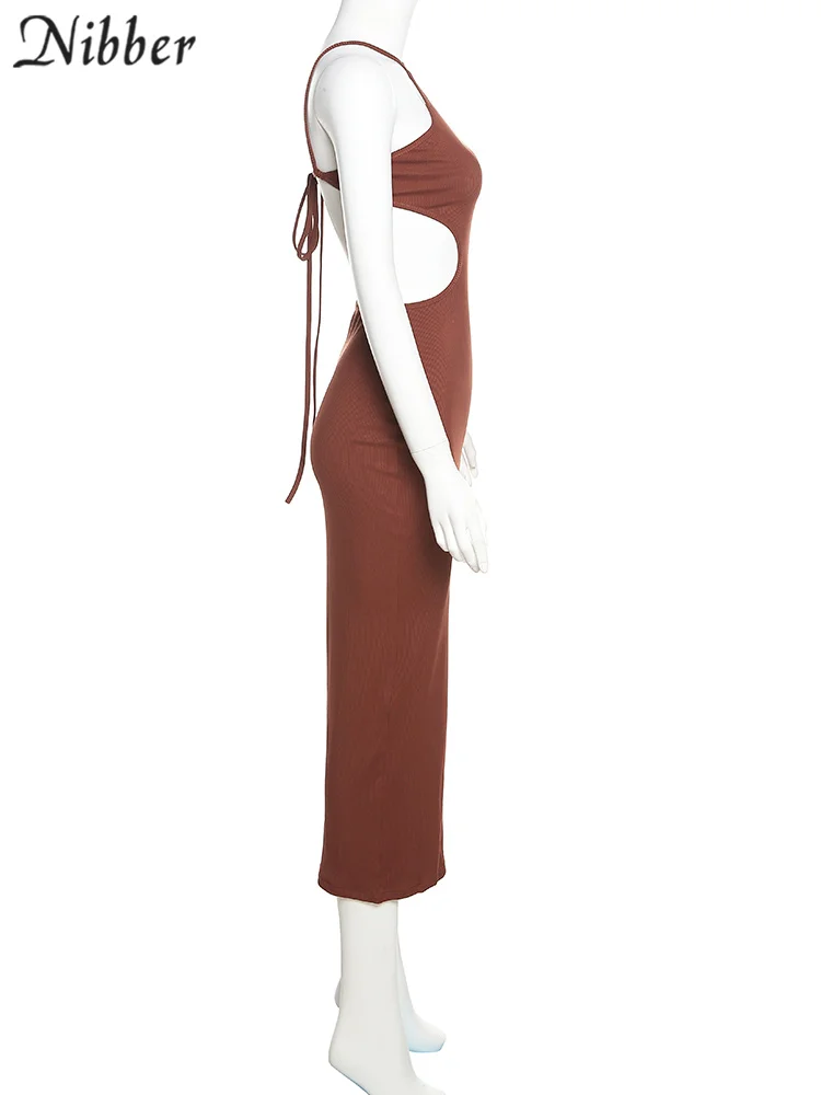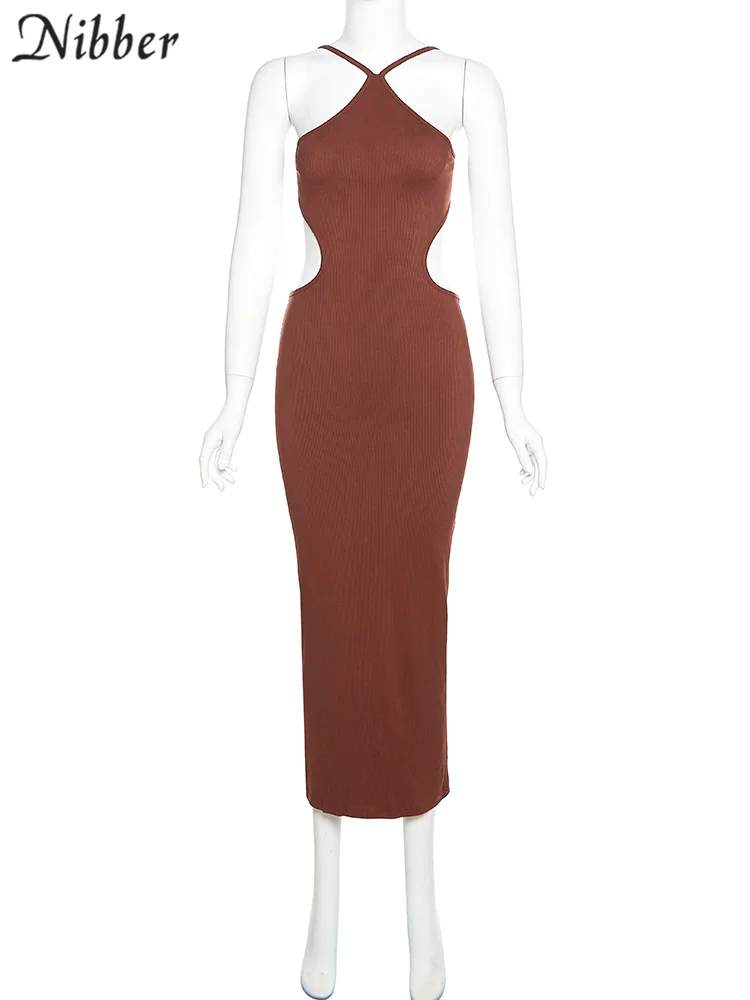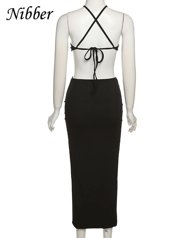 Open back strap hanging neck and buttocks wrapped slim fit dress for women
