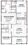 The Grace Cottage small home plan has two bedroom and two bathrooms.