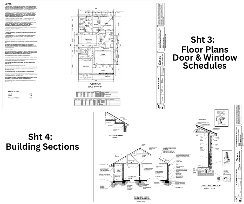 * Plans may also include 3D views, ceiling framing details and other applicable detail drawings pertinent to that plan