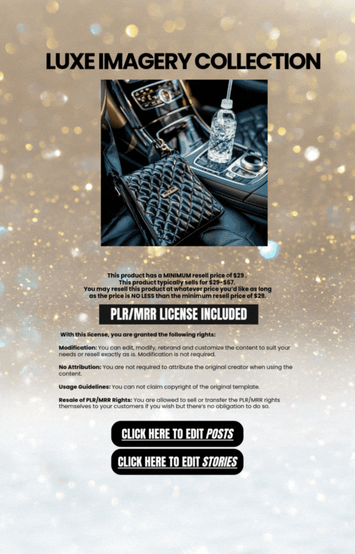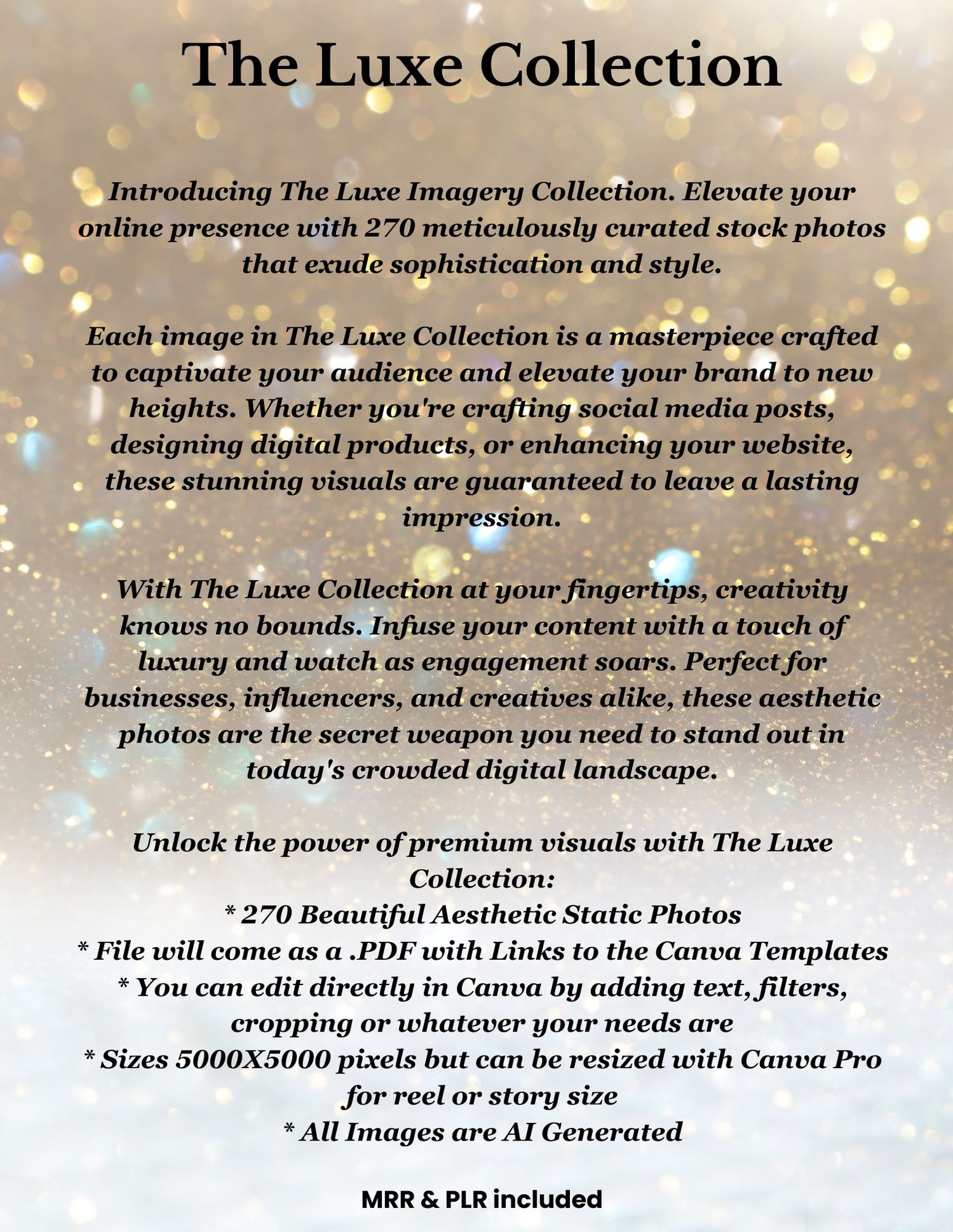 Each image in The Luxe Collection is a masterpiece crafted to captivate your audience and elevate your brand to new heights. Whether you're crafting social media posts, designing digital products, or enhancing your website, these stunning visuals are guaranteed to leave a lasting impression.