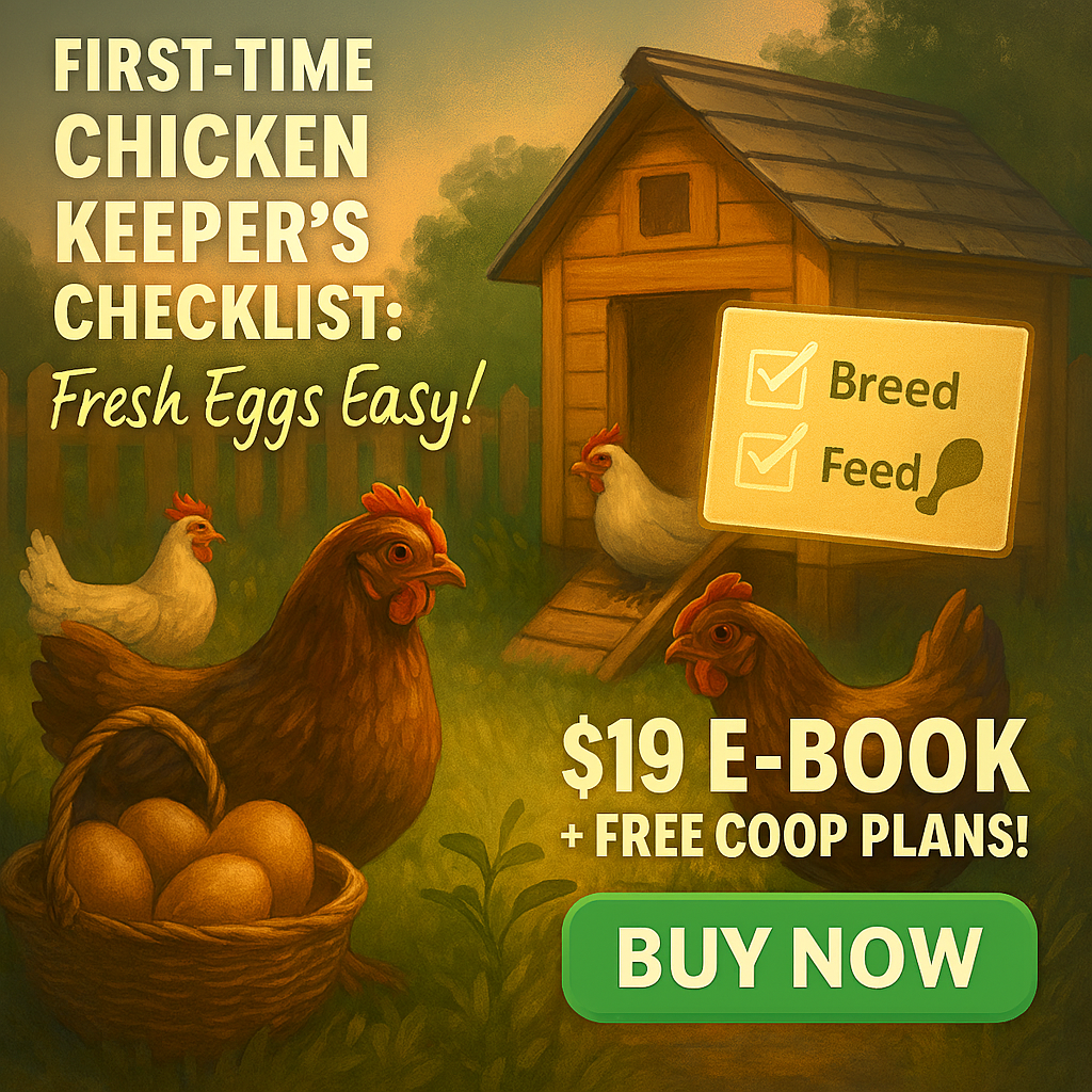 Ready to raise chickens but overwhelmed? "The First-Time Chicken Keeper's Checklist" e-book simplifies it all! This beginner-friendly guide walks you through choosing breeds, building coops, feeding, and keeping hens healthy.