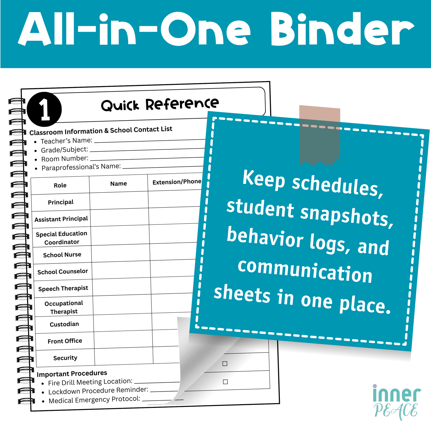 Keep paraprofessionals organized and confident with this all-in-one binder!