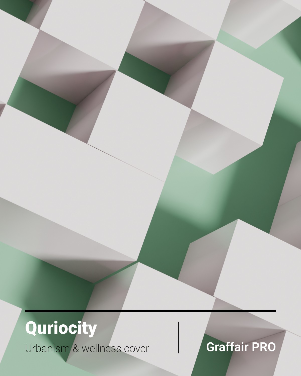 Quriocity: A blocky, colored composition referring to urbanism, a futuristic state of mind, and wellness. Great for medical, science, and smart cities subjects.