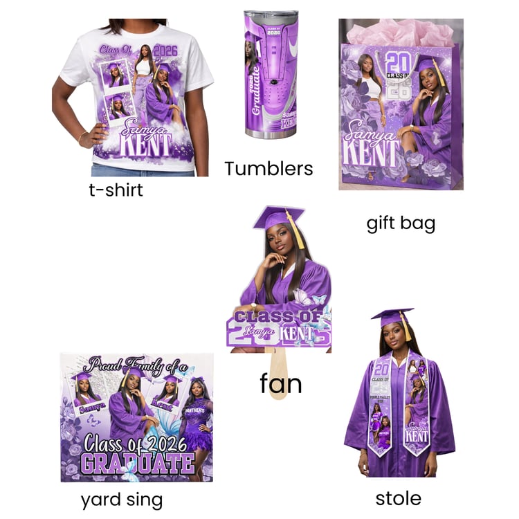 All items are custom-made and personalized for your graduate. Photos and design details must be submitted after purchase. Due to the custom nature of this package, all sales are final.
