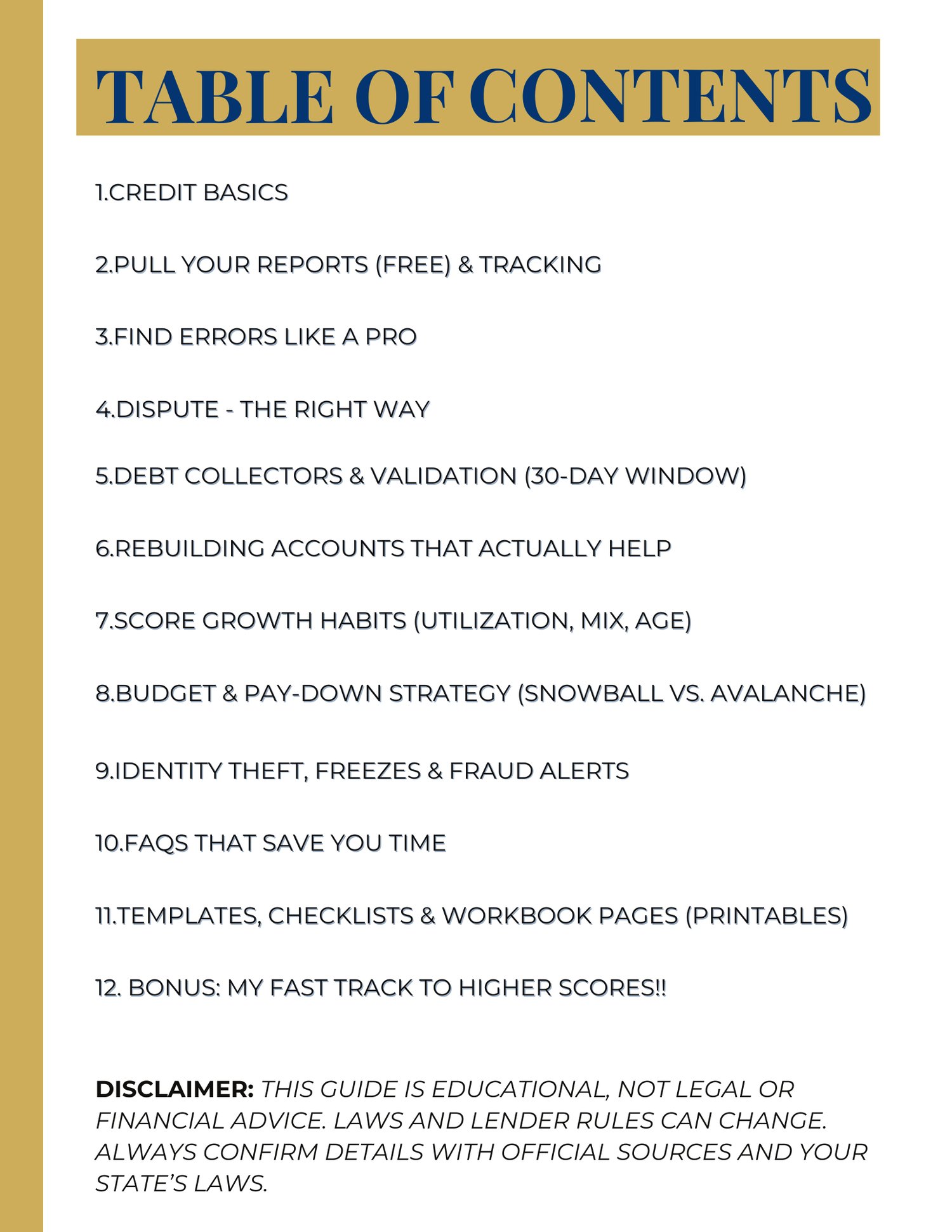 The DIY Credit Repair Guide is a complete digital resource designed to help you understand how credit really works, identify errors on your credit reports, and take legal, effective steps to improve your credit profile on your own.