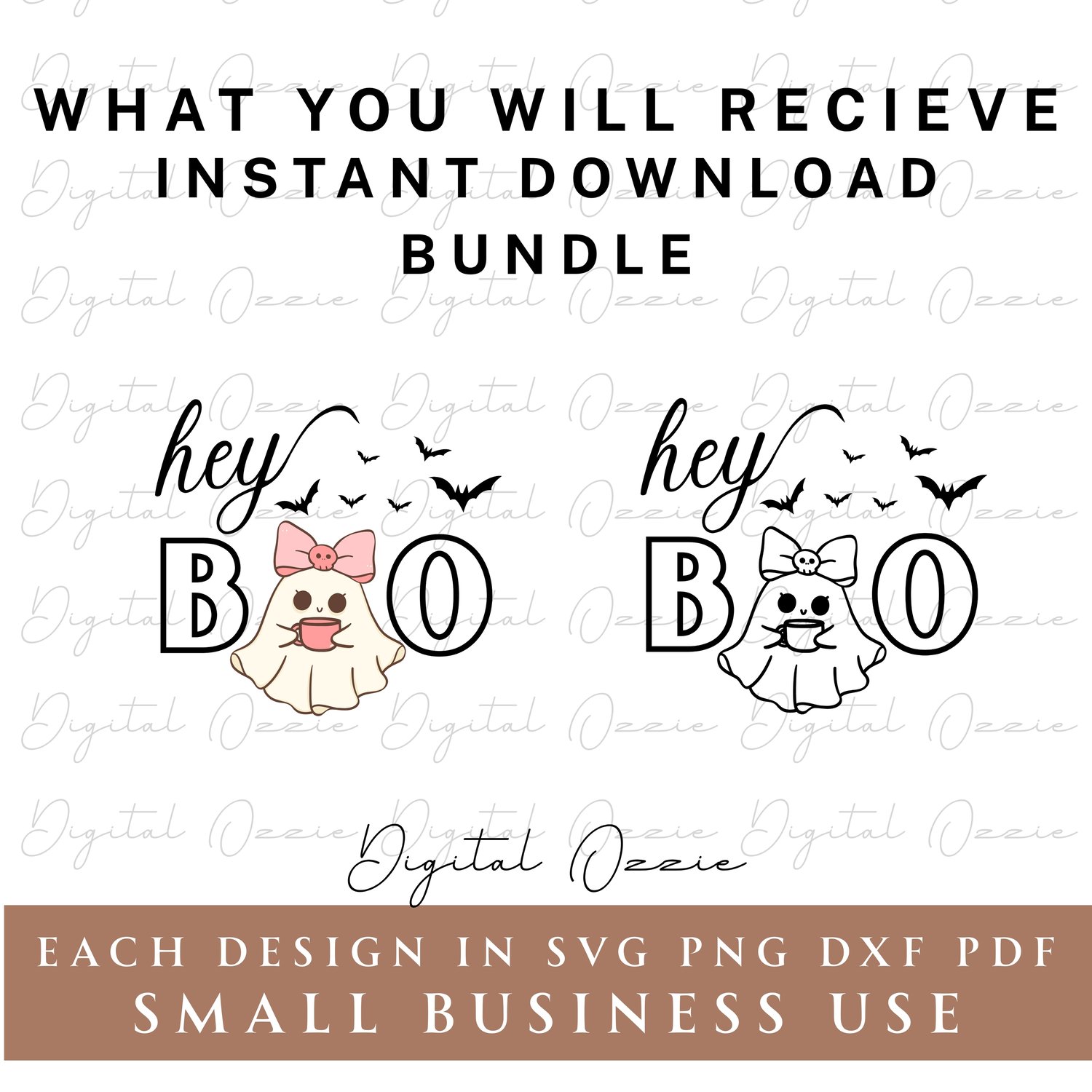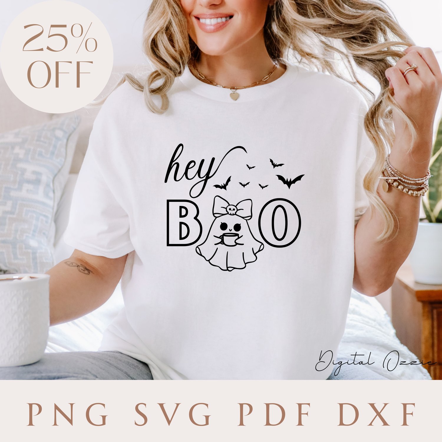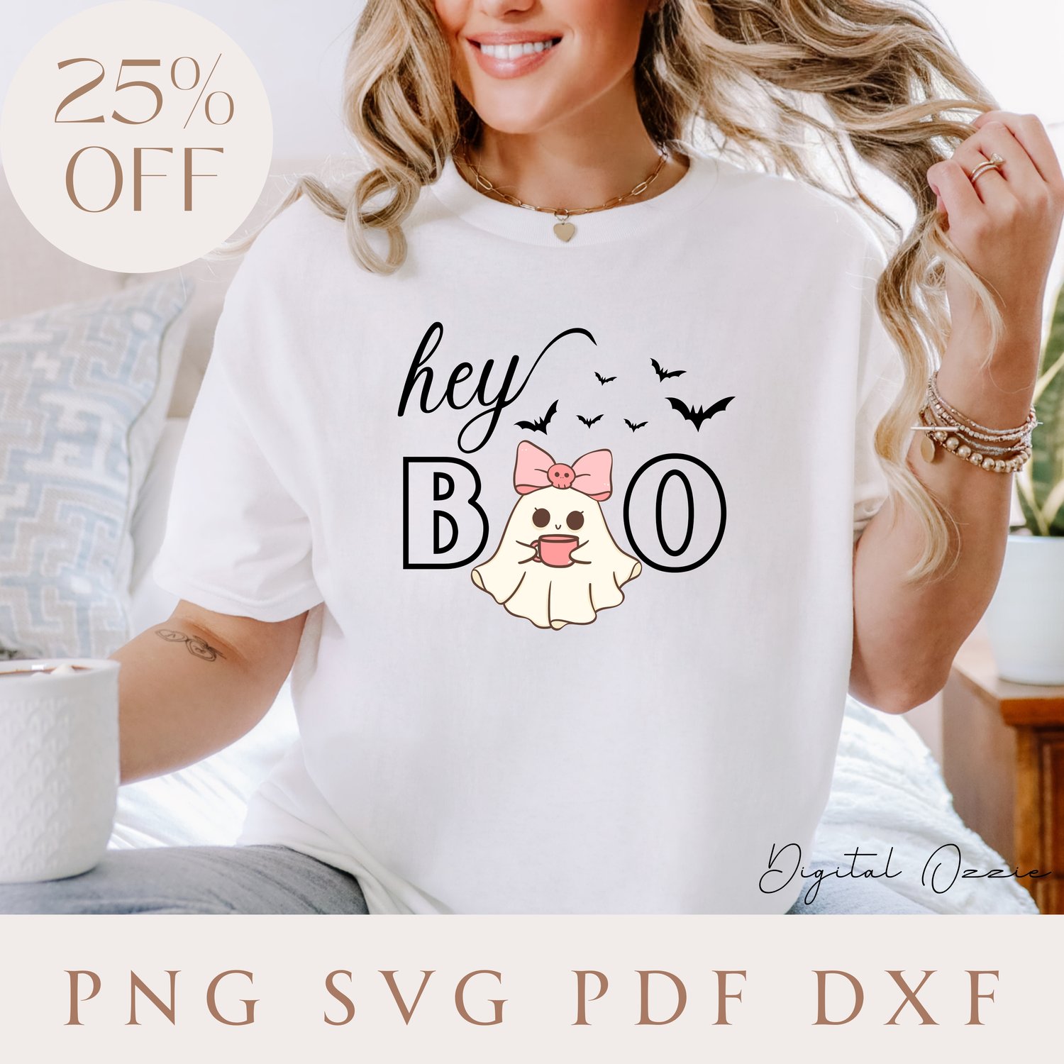 Hey Boo SVG | Cute Ghost Halloween SVG PNG DXF PDF | Funny Ghost Shirt Design | Cricut & Silhouette Digital Download | Halloween Clipart