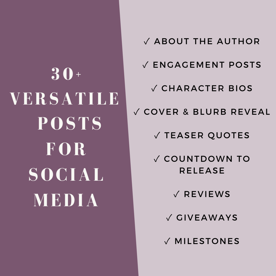 Simplify your social media marketing with this set of 30 customizable 4:5 social media templates, perfect for Instagram, Facebook, and other platforms! Created specifically for indie authors, these templates include engaging prompts for your followers, promotions for your latest novel, and even launch day countdowns.