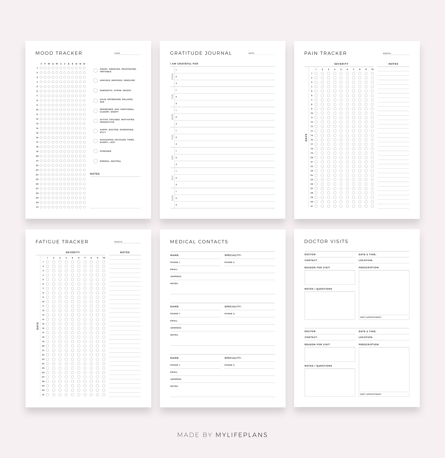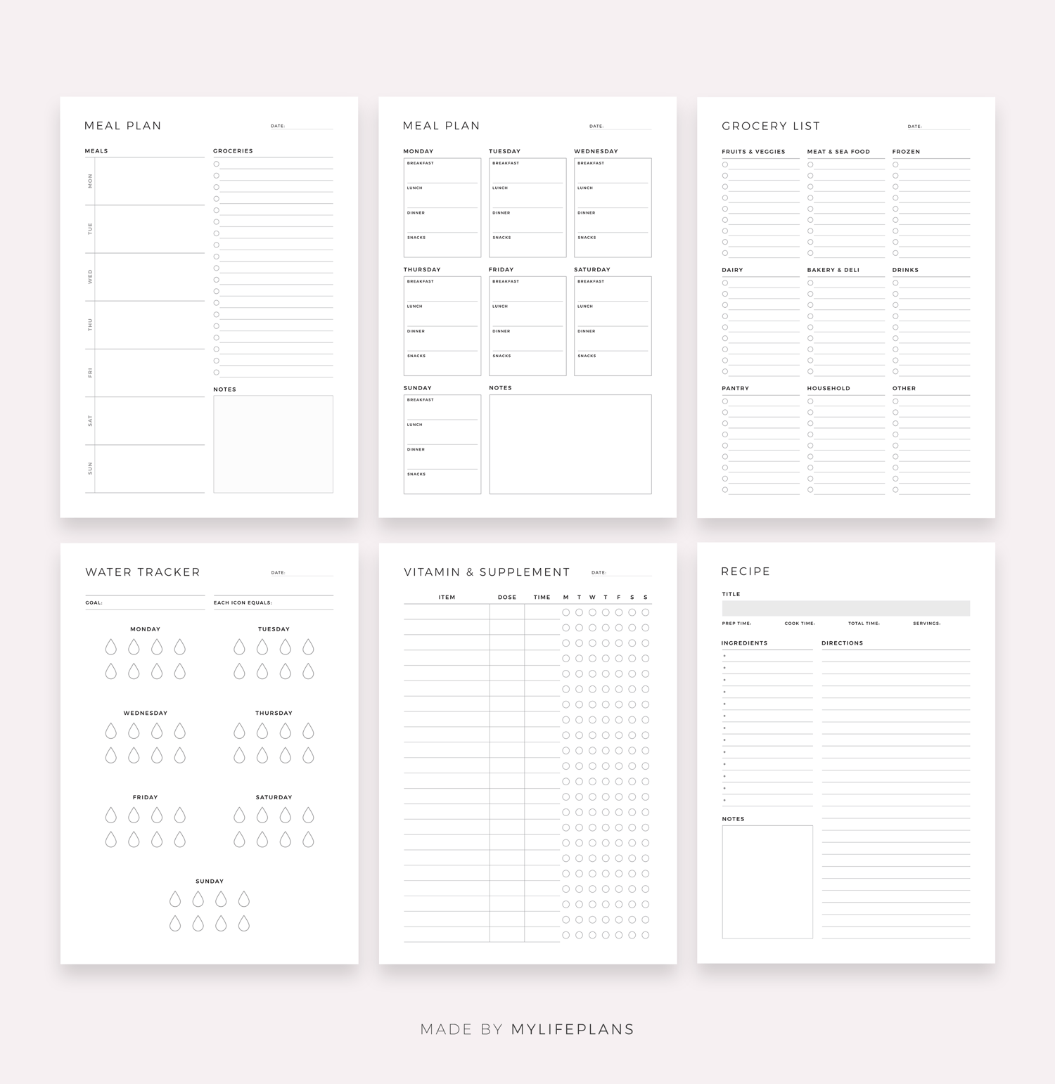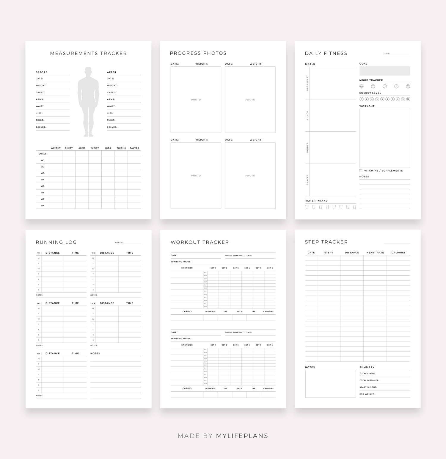 Fitness, Diet & Health Planner Inserts Bundle, A4/Letter, Instant Download
