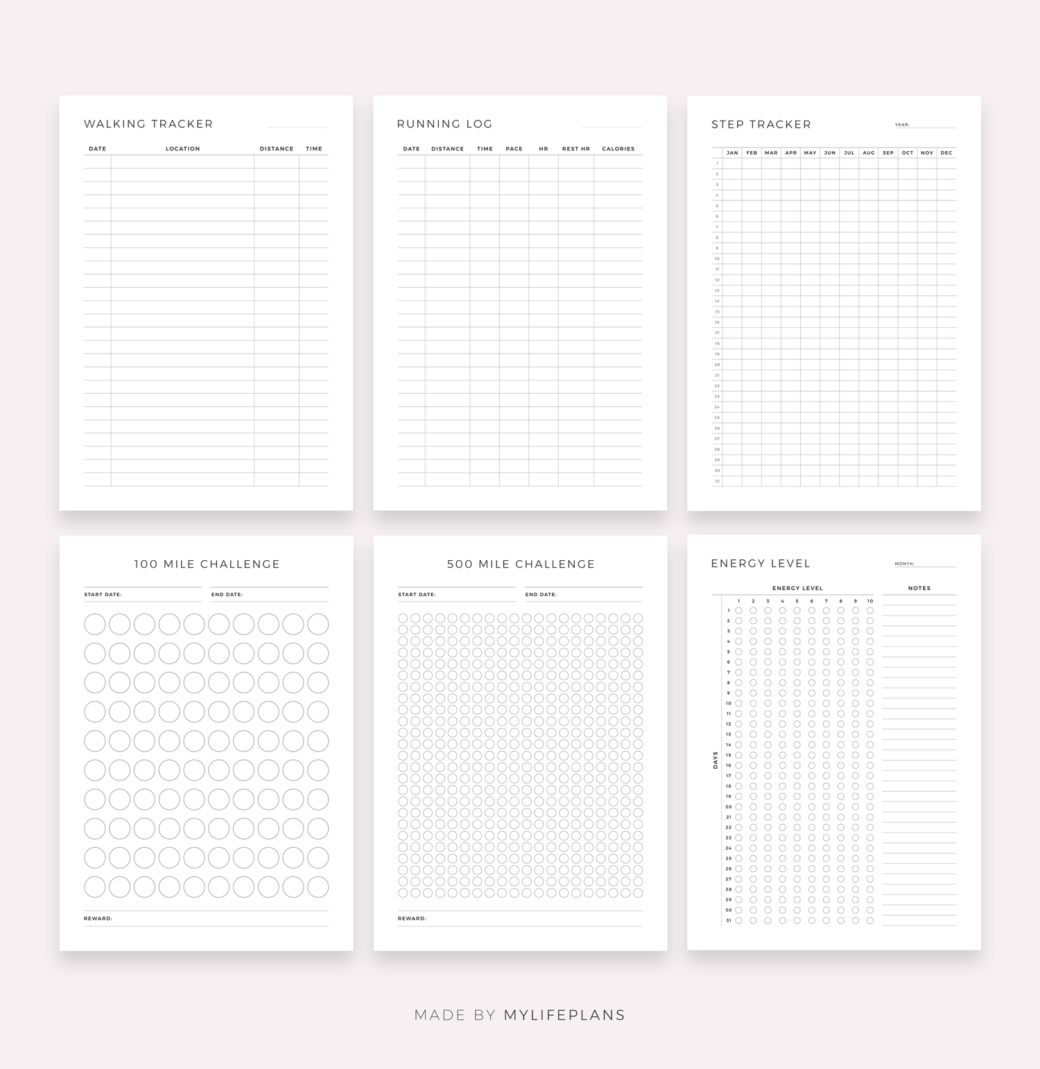 Fitness, Diet and Health planners bundle. It includes 95 unique printable planners to choose from, that will help you manage your life and achieve your goals. Just download, print and get started right away!