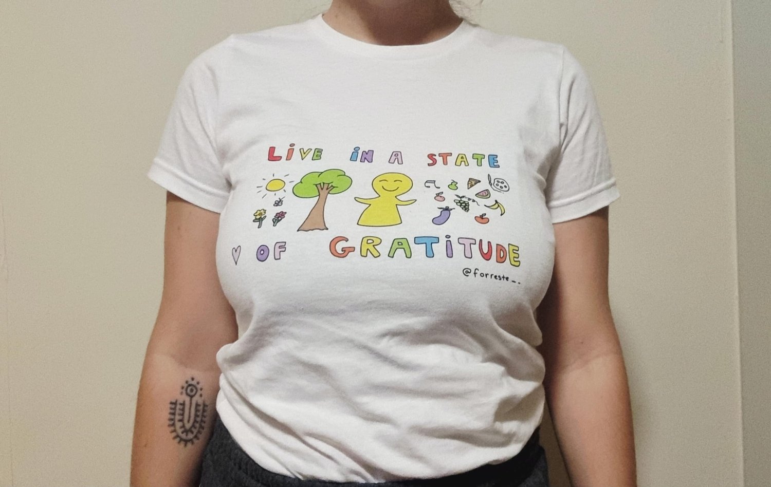 How cute are these! Make a statement of thankfulness and appreciation for life in this soft cotton tee featuring the words "Gratitude is a state of being!" - A gentle reminder to care deeply for our experience and all that is a part it. 🌈🌻🌸🌹🌷
