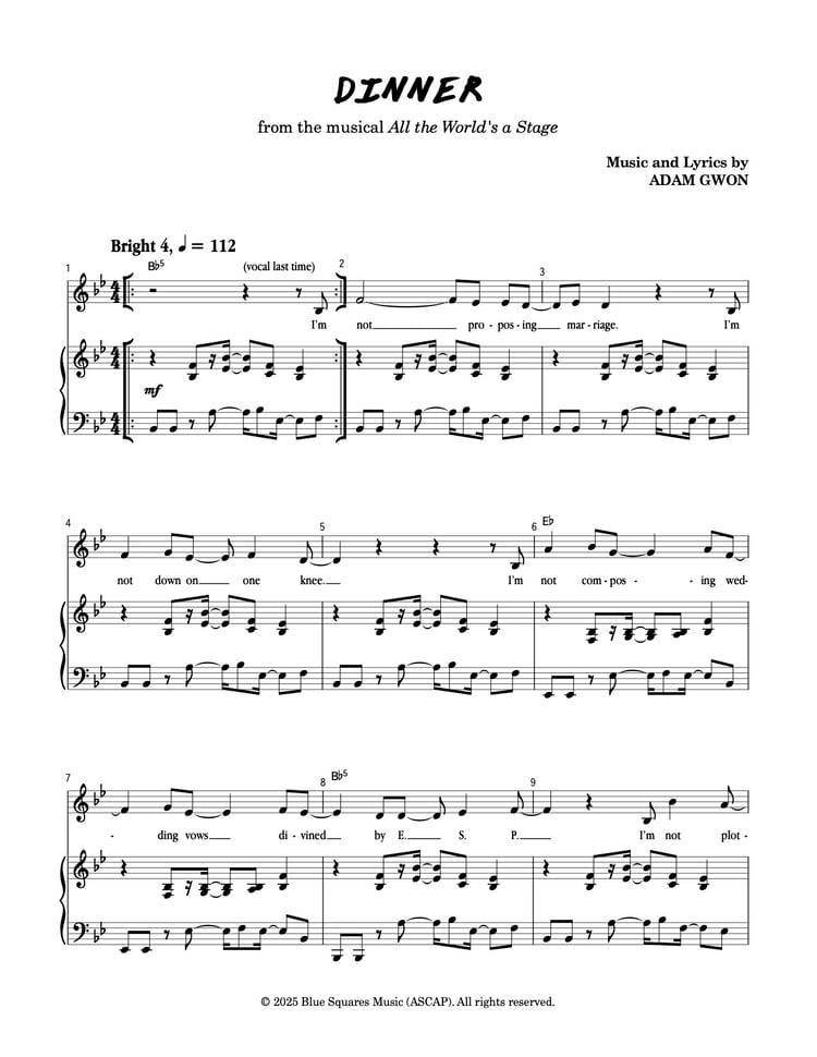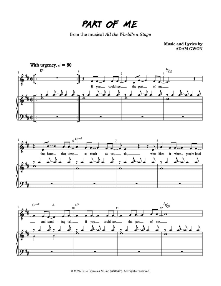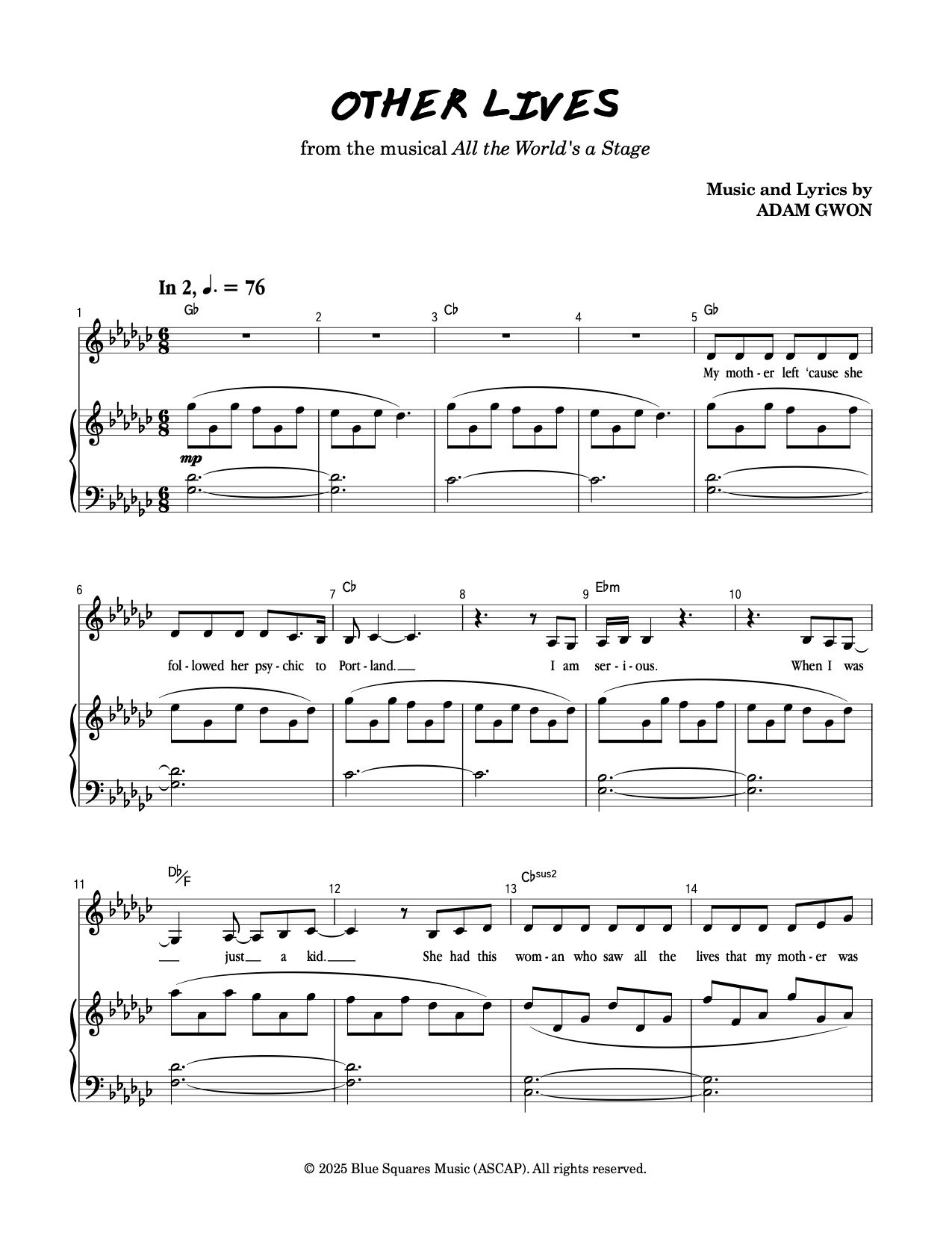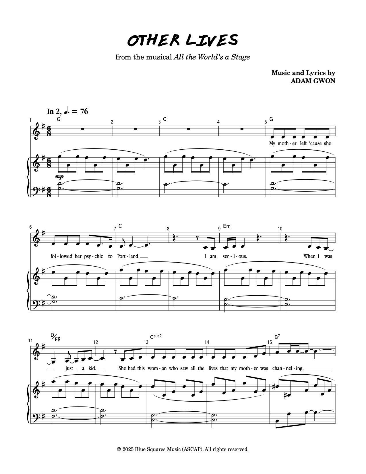 Piano/Vocal sheet music for "Other Lives" from All the World's a Stage, available in two keys.