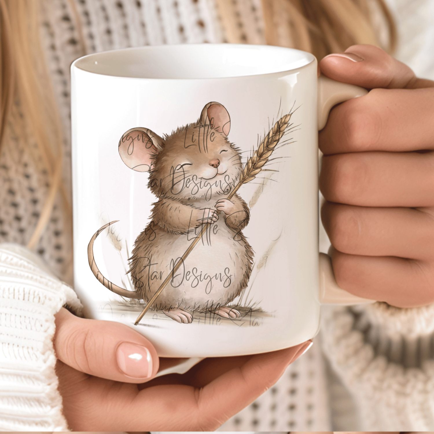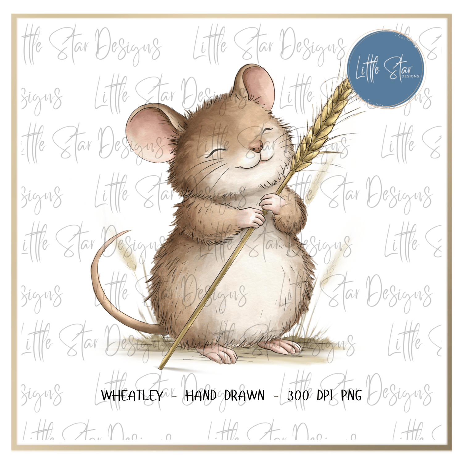 ⭐️ Inky Watercolour illustration featuring a little field mouse holding a wheat grass (1 PNG)