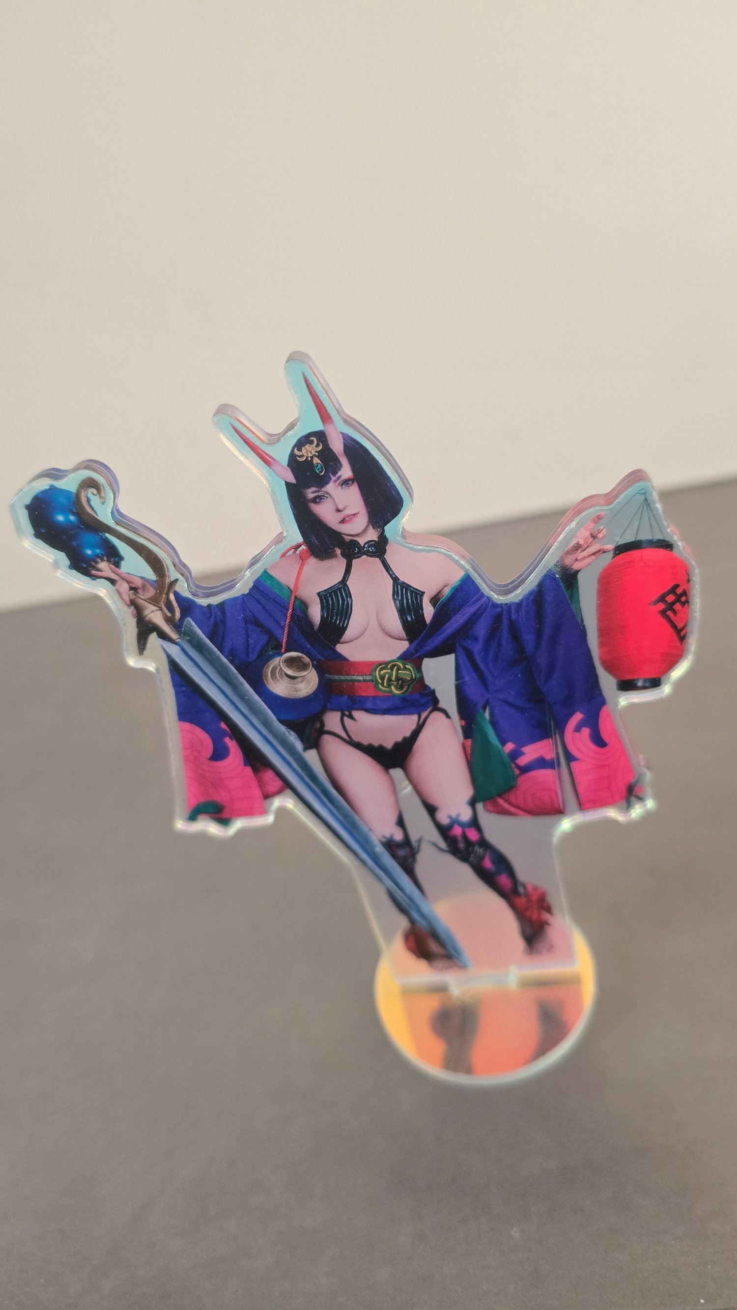 The acrylic standees you came to know and love are here~ Each one is around 15 cm tall and varies in width. As you know I love holographic stuff, so I made sure these would be a little extra - and thus all of them are printed on holo plexi that shines beautifully in the light and the reflection/color changes.