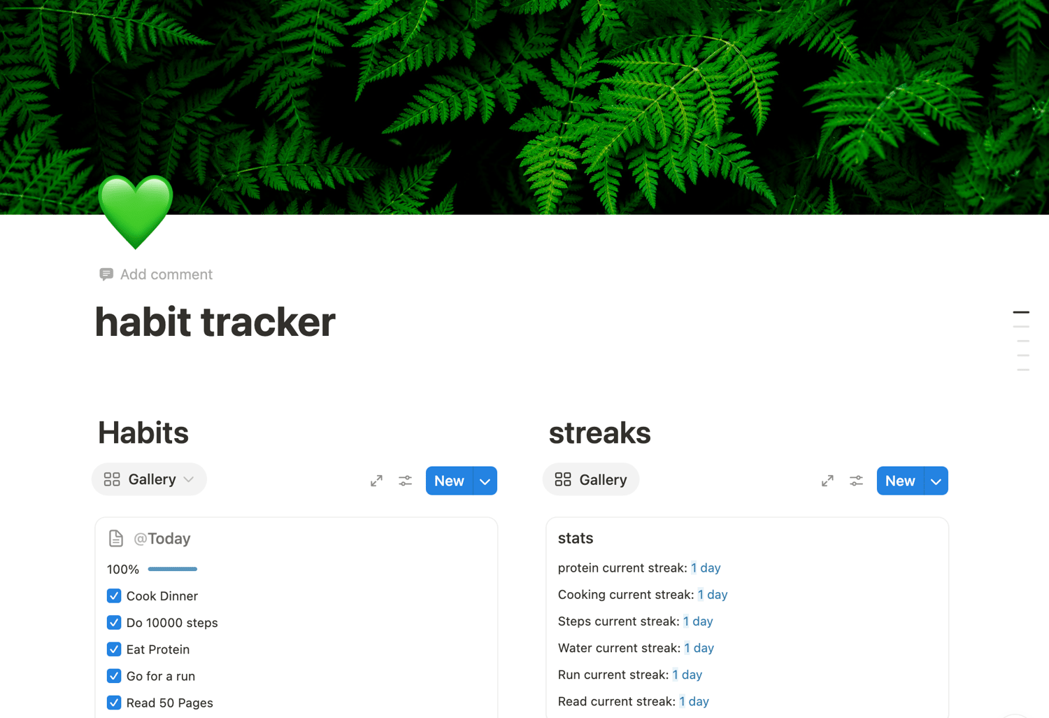 🌿 Green Minimalist Habit Tracker for Notion