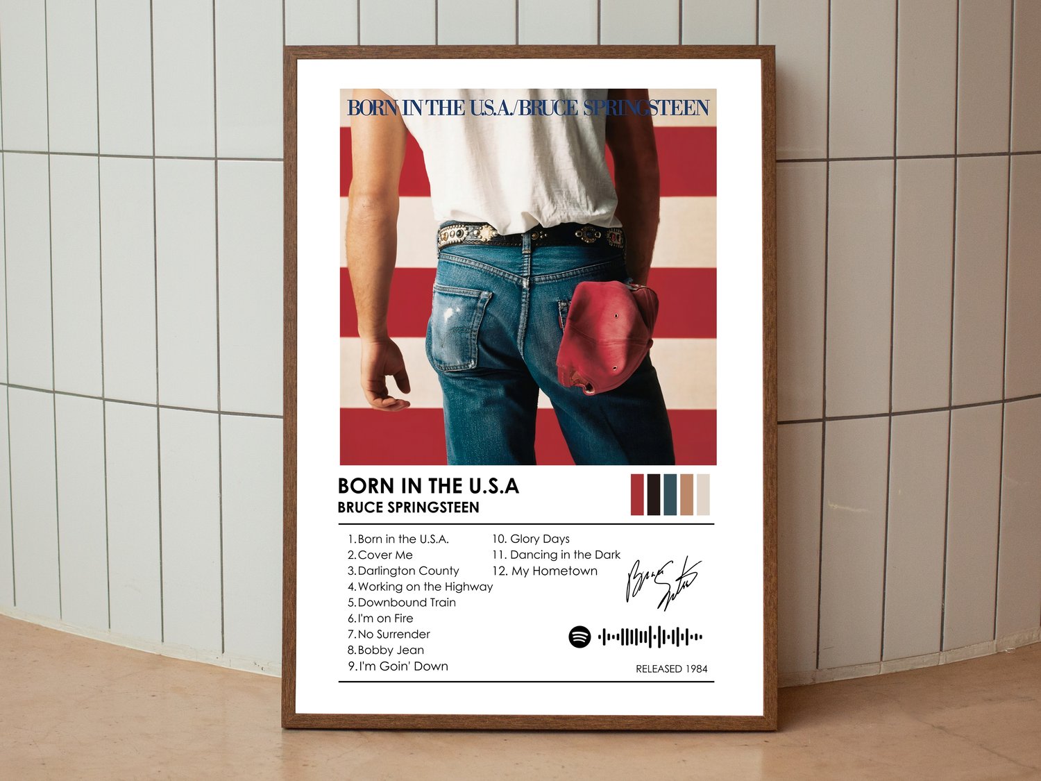 Bring the energy of Bruce Springsteen into your home with this Born in the U.S.A. album cover poster.