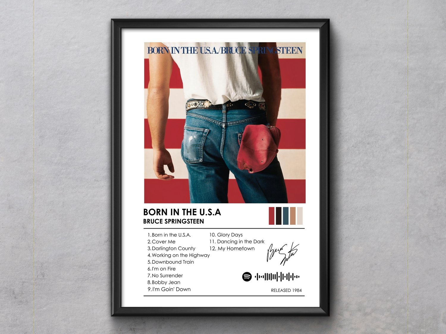 This album cover print also makes a thoughtful gift idea for music lovers, collectors of 80s rock posters, and fans of The Boss. Its minimalist design makes it a timeless piece of rock music wall decor.